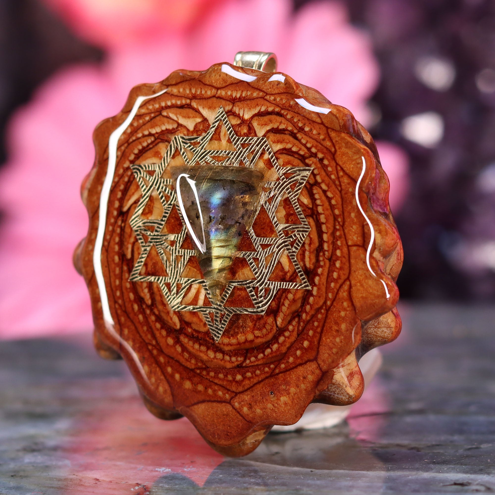 Every pinecone pendant is an elegant gift from Mother Nature -- unveiling the ornate Sacred Geometry hidden at the center of one of the world's densest Pinecones. Because only one cross-section is taken from the "heart" of each Cone, every pendant is absolutely unique, and truly one-of-a-kind.