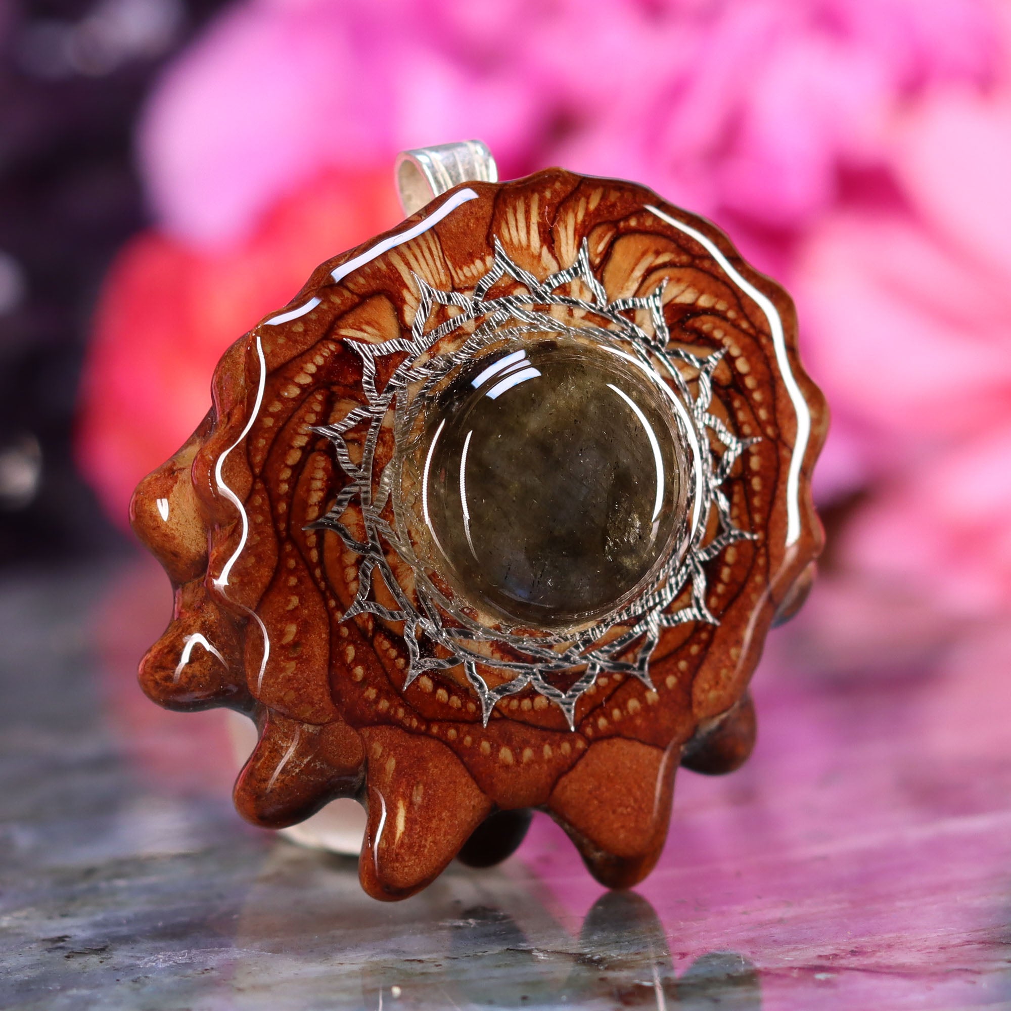Every pinecone pendant is an elegant gift from Mother Nature -- unveiling the ornate Sacred Geometry hidden at the center of one of the world's densest Pinecones. Because only one cross-section is taken from the "heart" of each Cone, every pendant is absolutely unique, and truly one-of-a-kind.