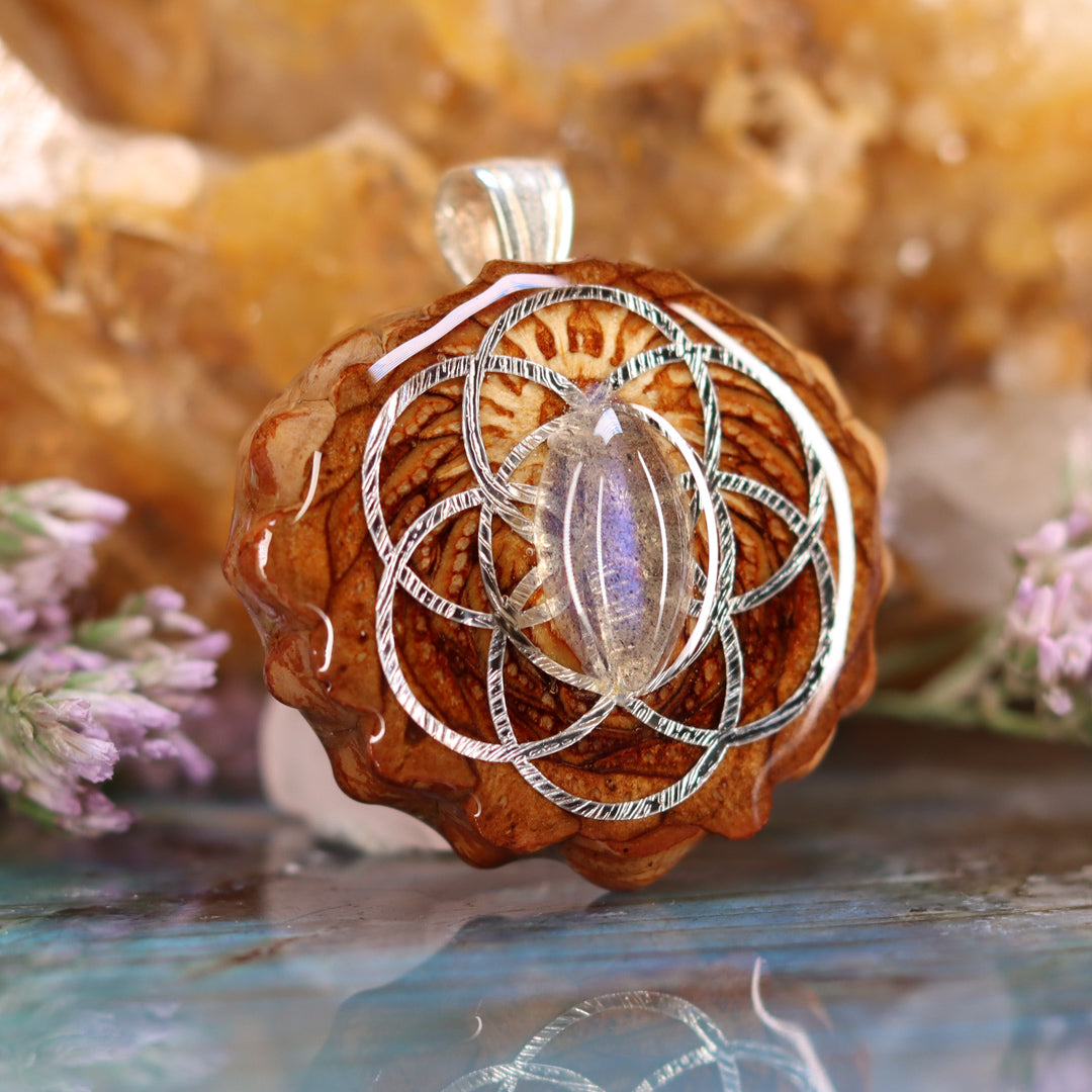 Labradorite with Silver Seed of Life