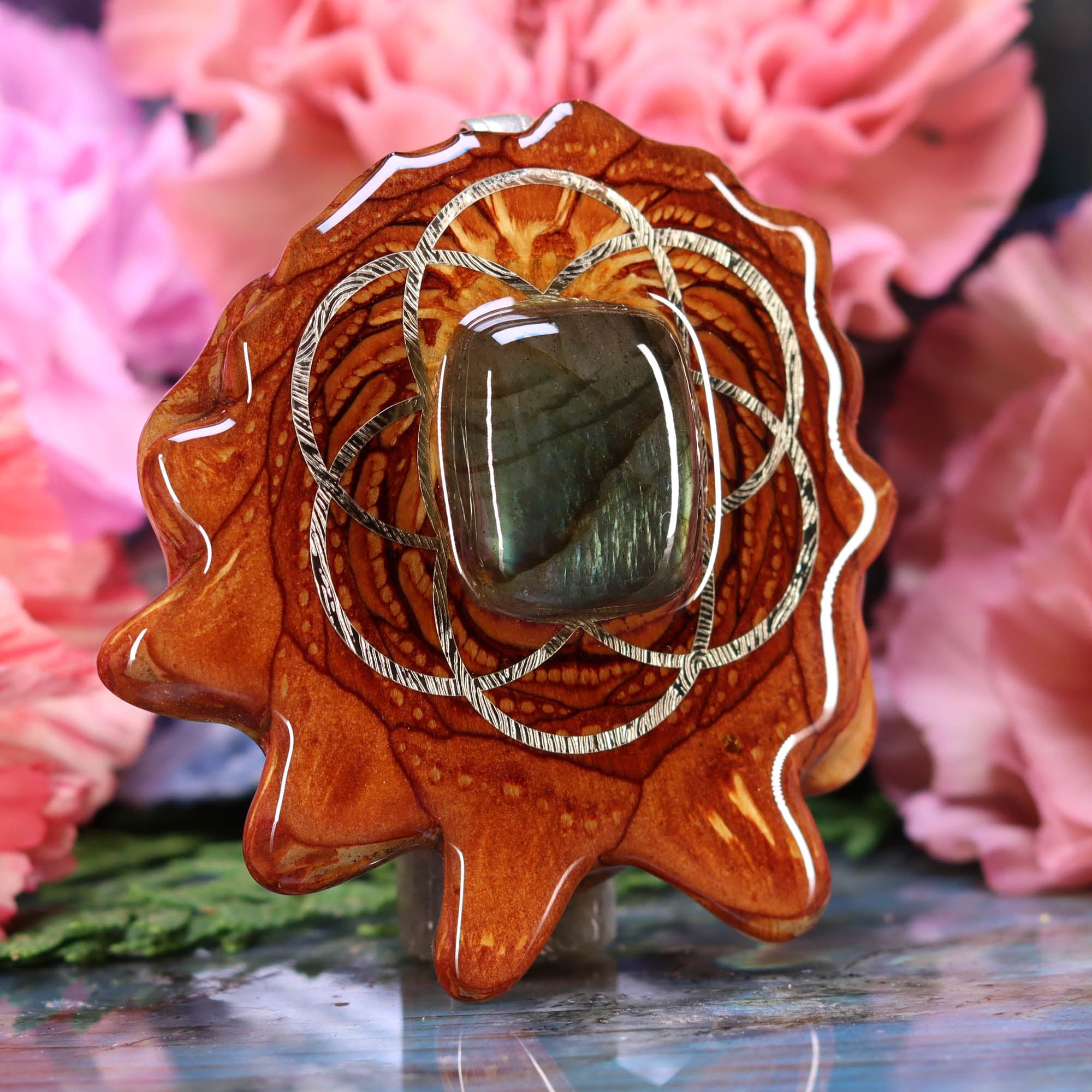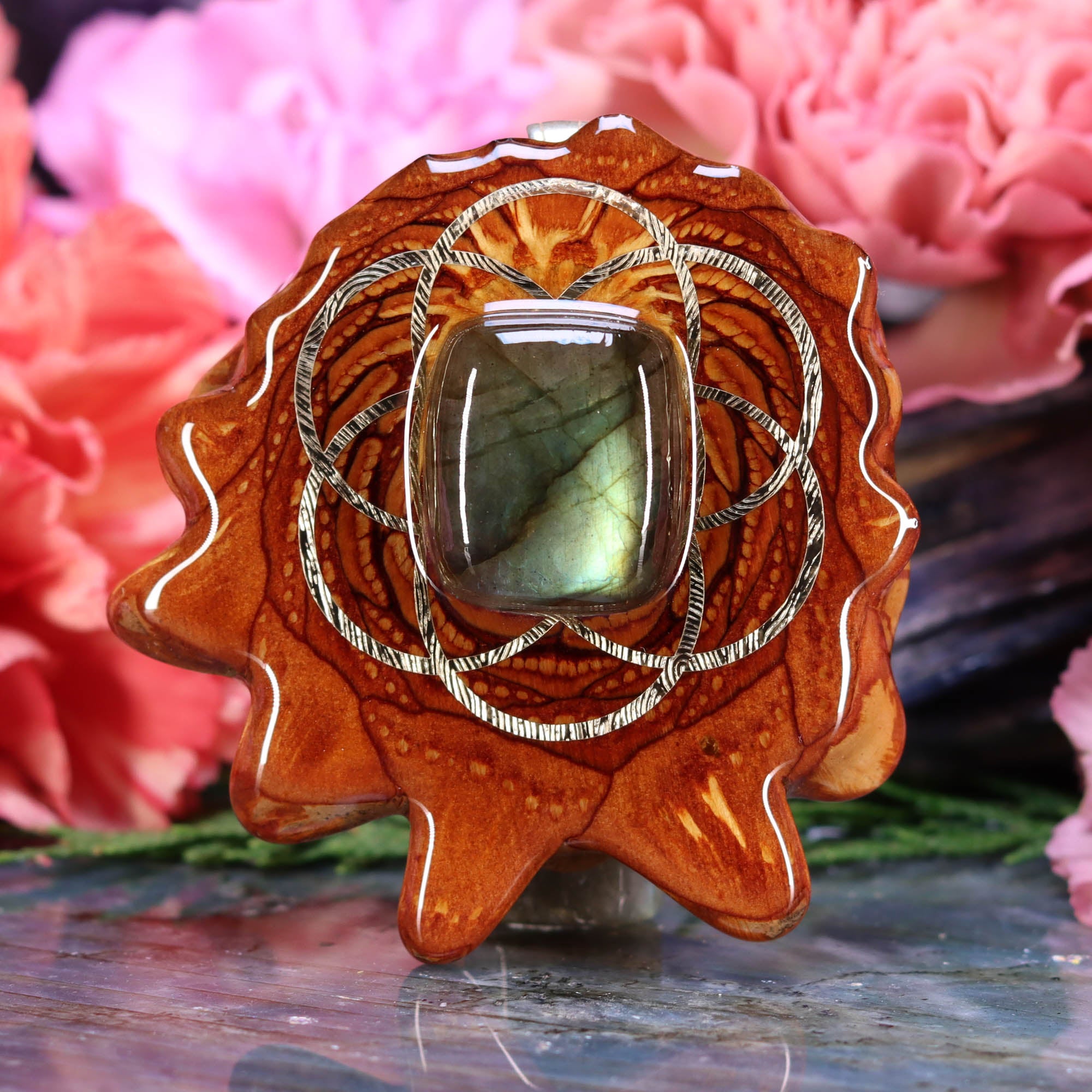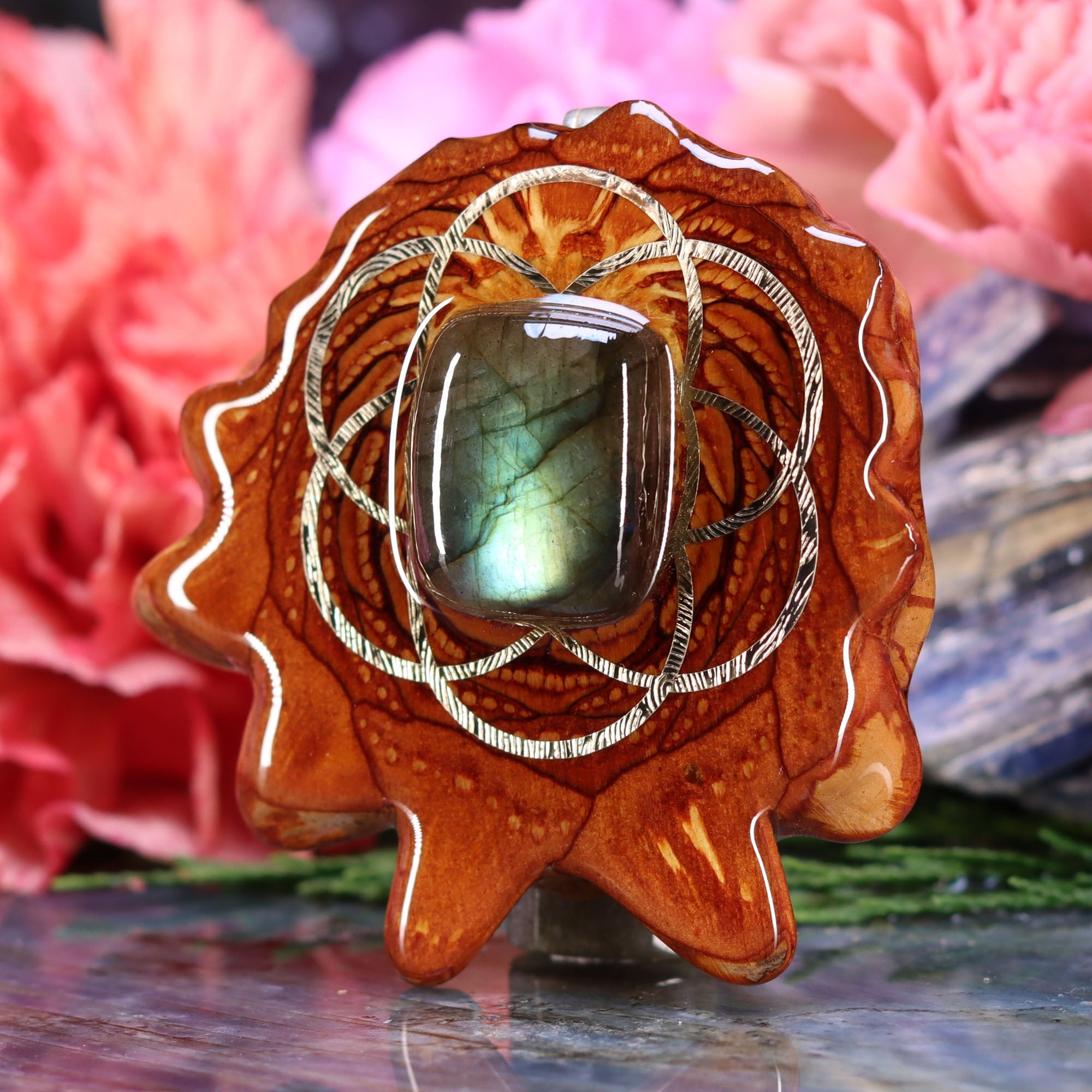 Labradorite with Silver Seed of Life and Back Om