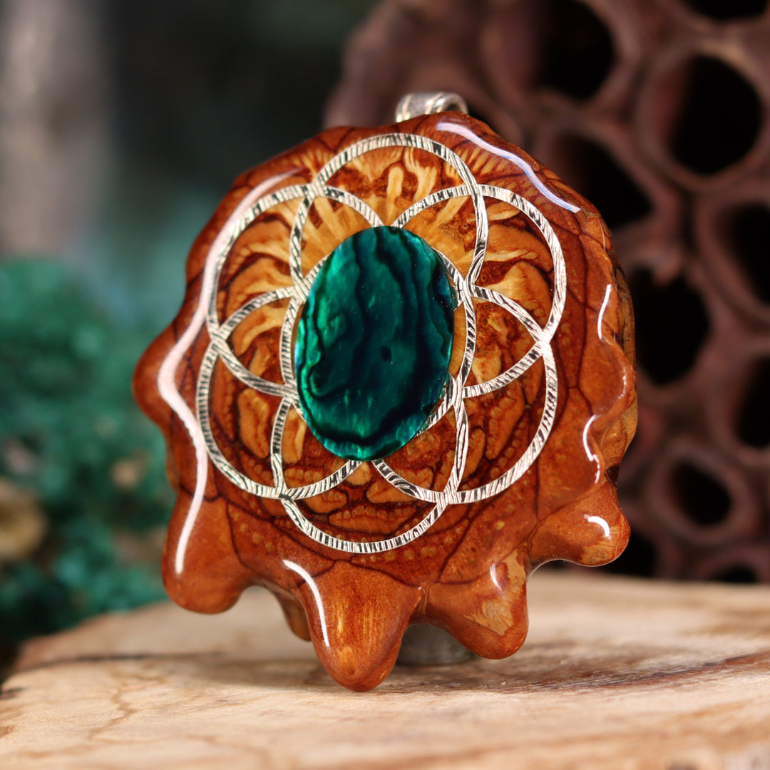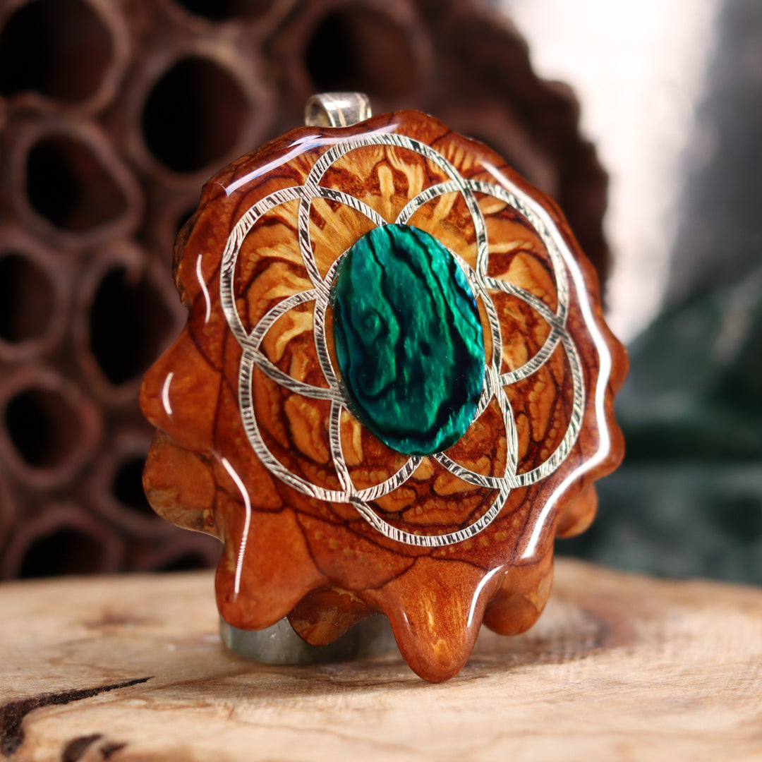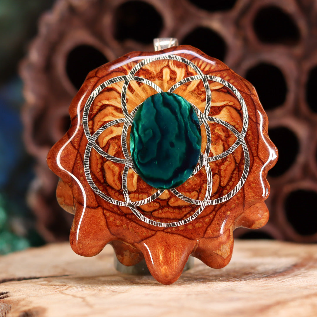 Green Paua Shell with Silver Seed of Life