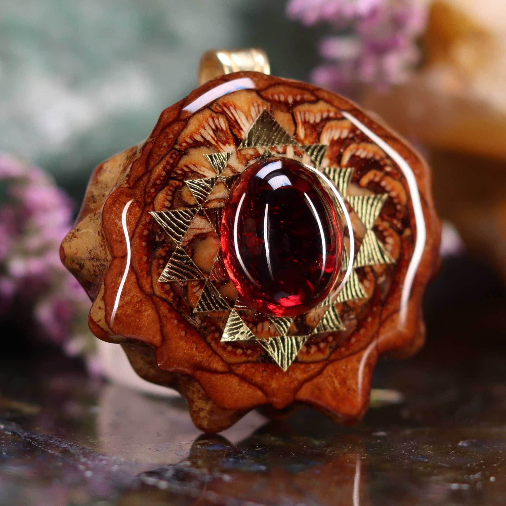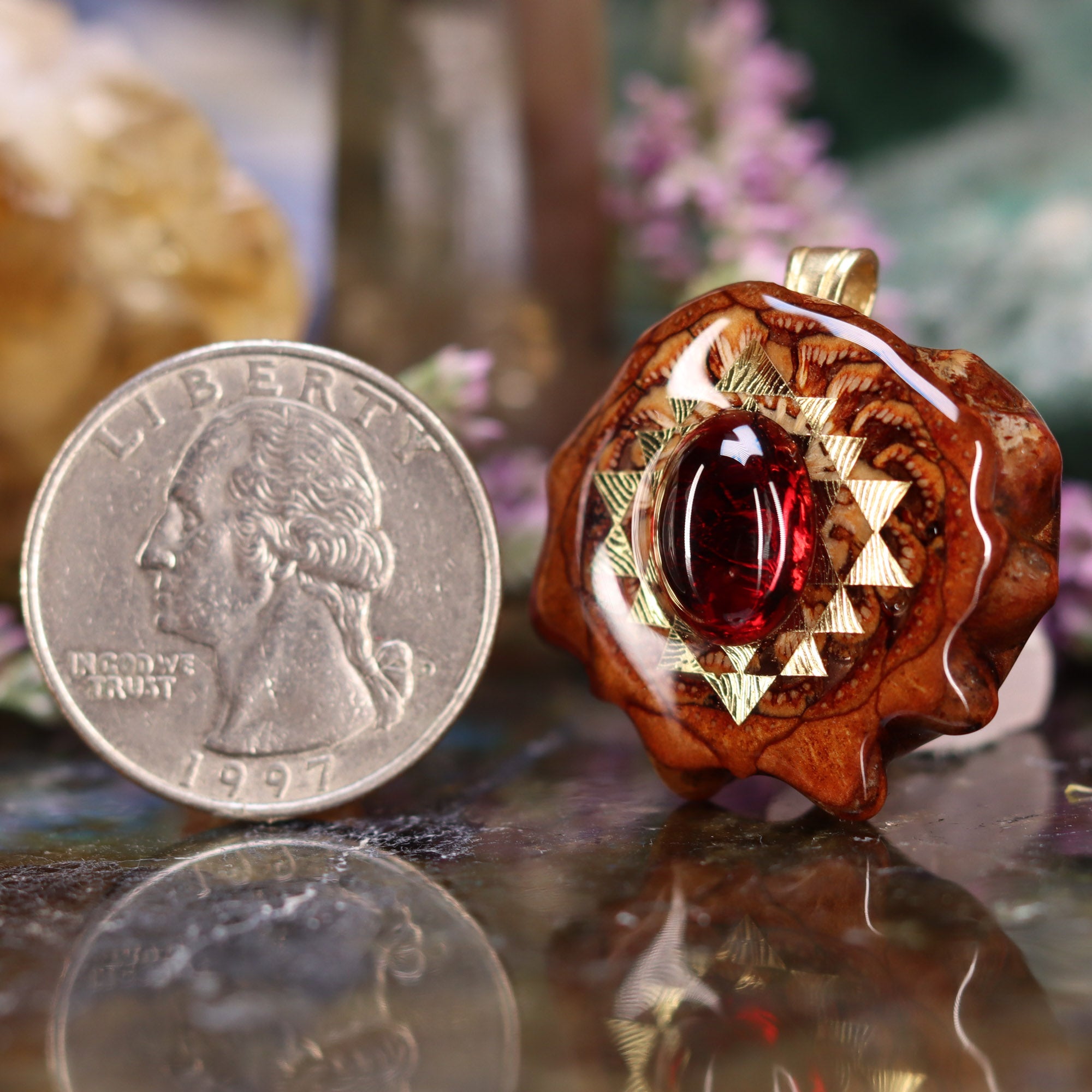 Every pinecone pendant is an elegant gift from Mother Nature -- unveiling the ornate Sacred Geometry hidden at the center of one of the world's densest Pinecones. Because only one cross-section is taken from the "heart" of each Cone, every pendant is absolutely unique, and truly one-of-a-kind.