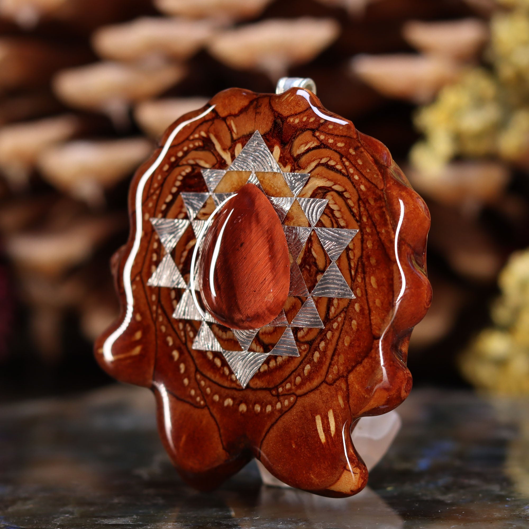 Every pinecone pendant is an elegant gift from Mother Nature -- unveiling the ornate Sacred Geometry hidden at the center of one of the world's densest Pinecones. Because only one cross-section is taken from the "heart" of each Cone, every pendant is absolutely unique, and truly one-of-a-kind.
