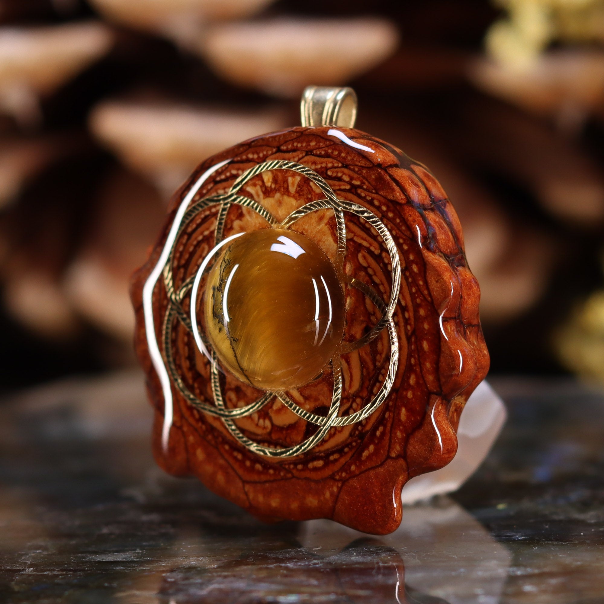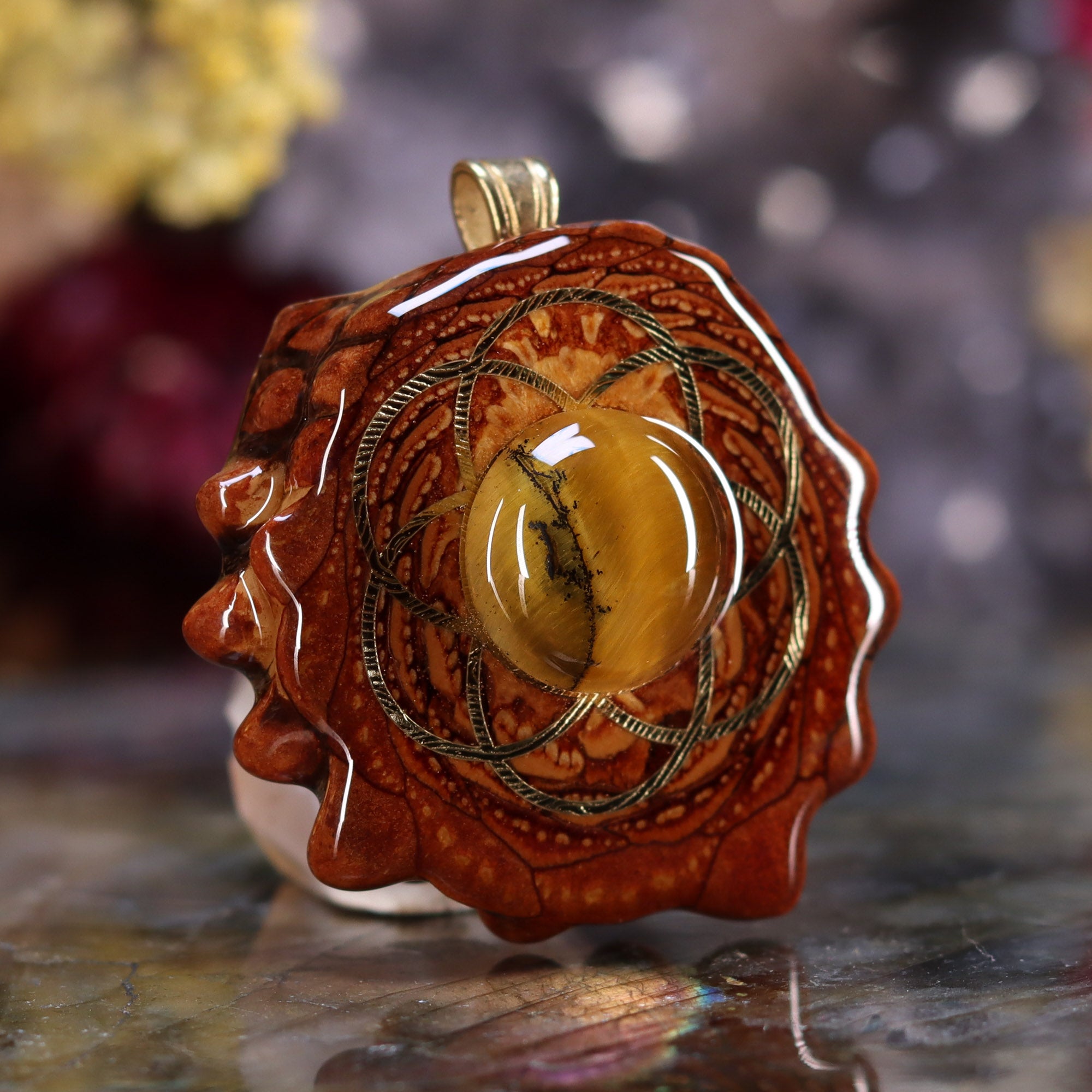 Yellow Tiger's Eye with Gold Seed of Life