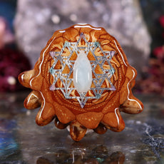 This Pinecone has been anointed with our "Merkaba" emblem, cast in Sterling Silver. Merkaba - "Mer" meaning Light, "Ka" meaning Spirit, and "Ba" meaning Body - is a powerful icon historically known as the "Vehicle of Ascension". The Merkaba opens the mind to increased awareness and promotes deep conscious interconnection.