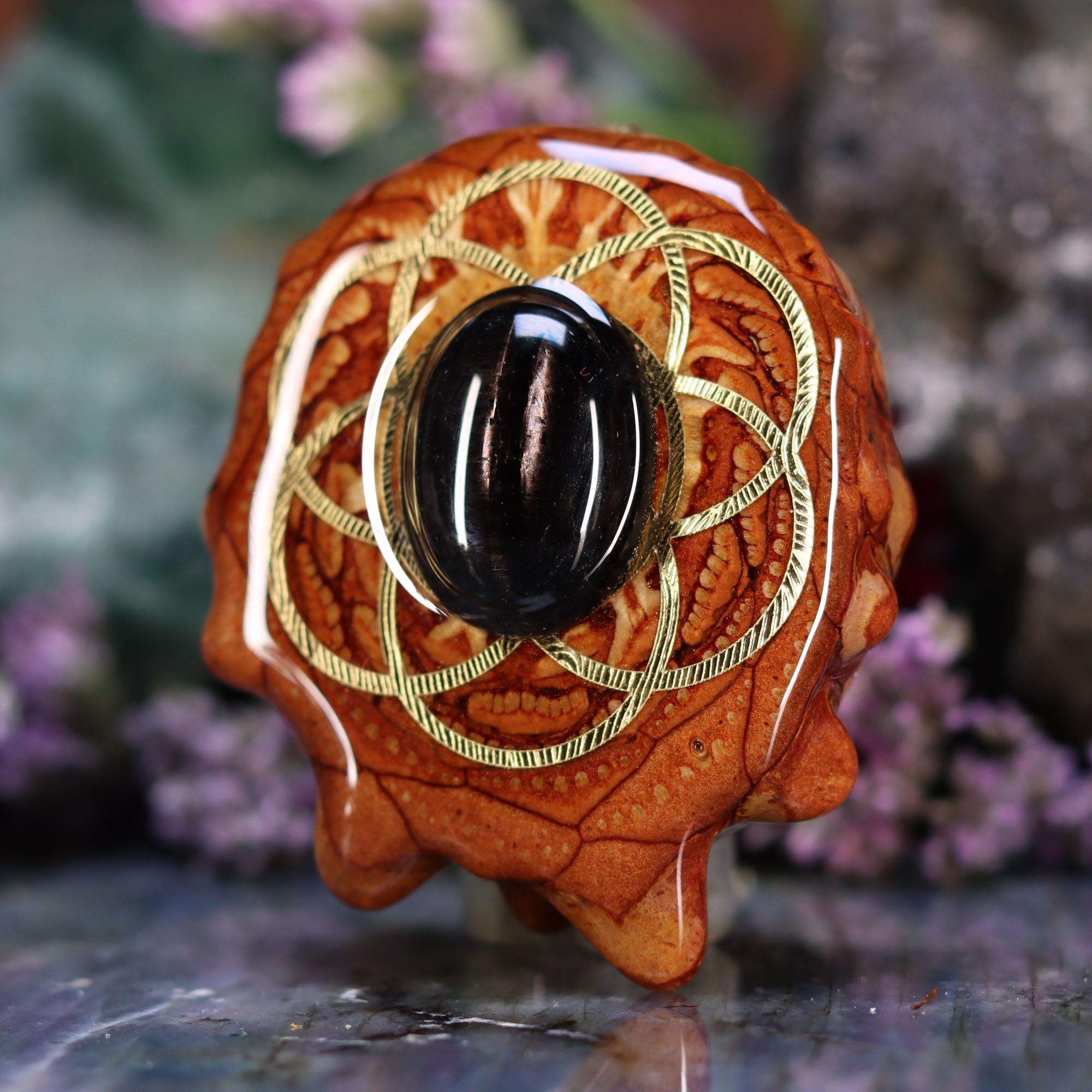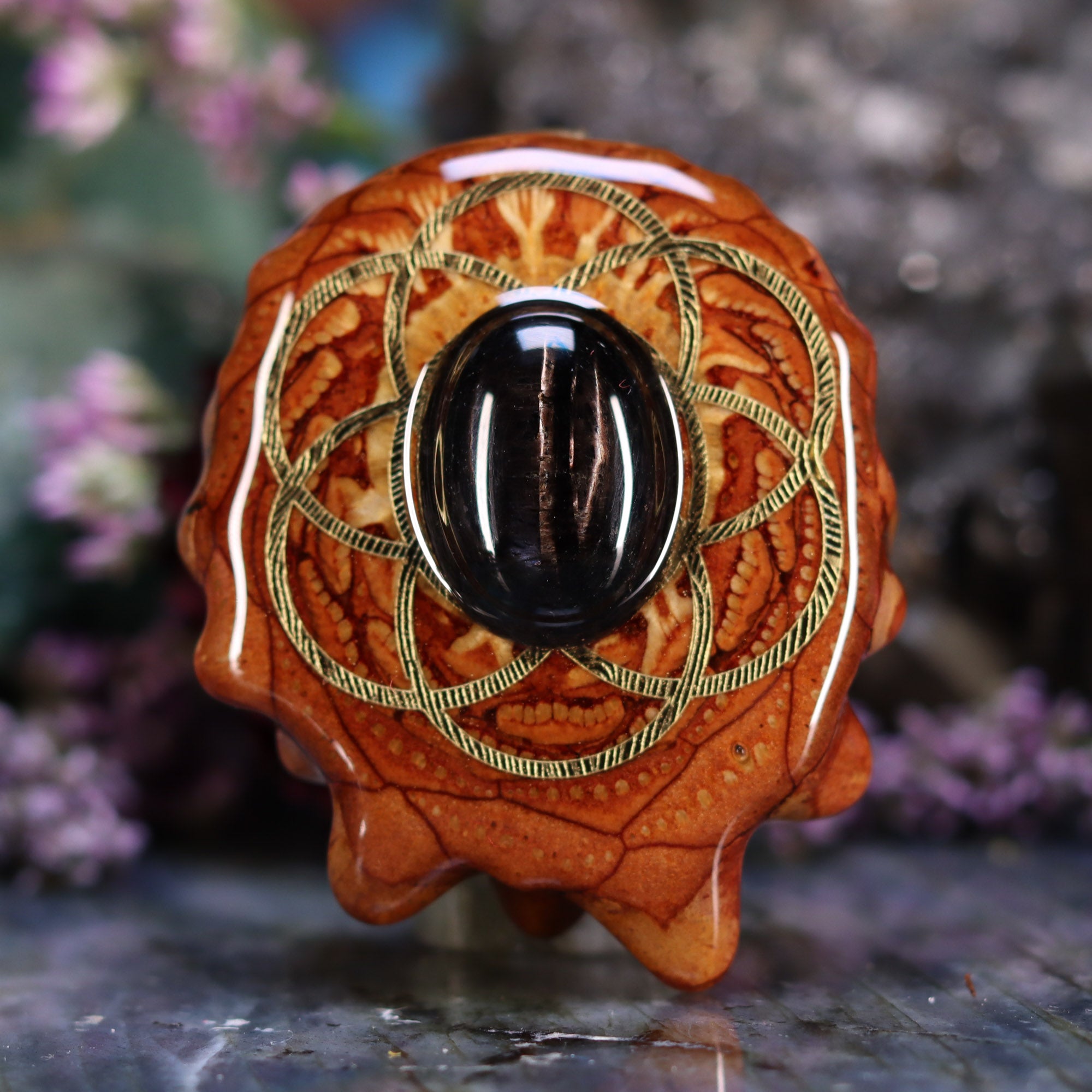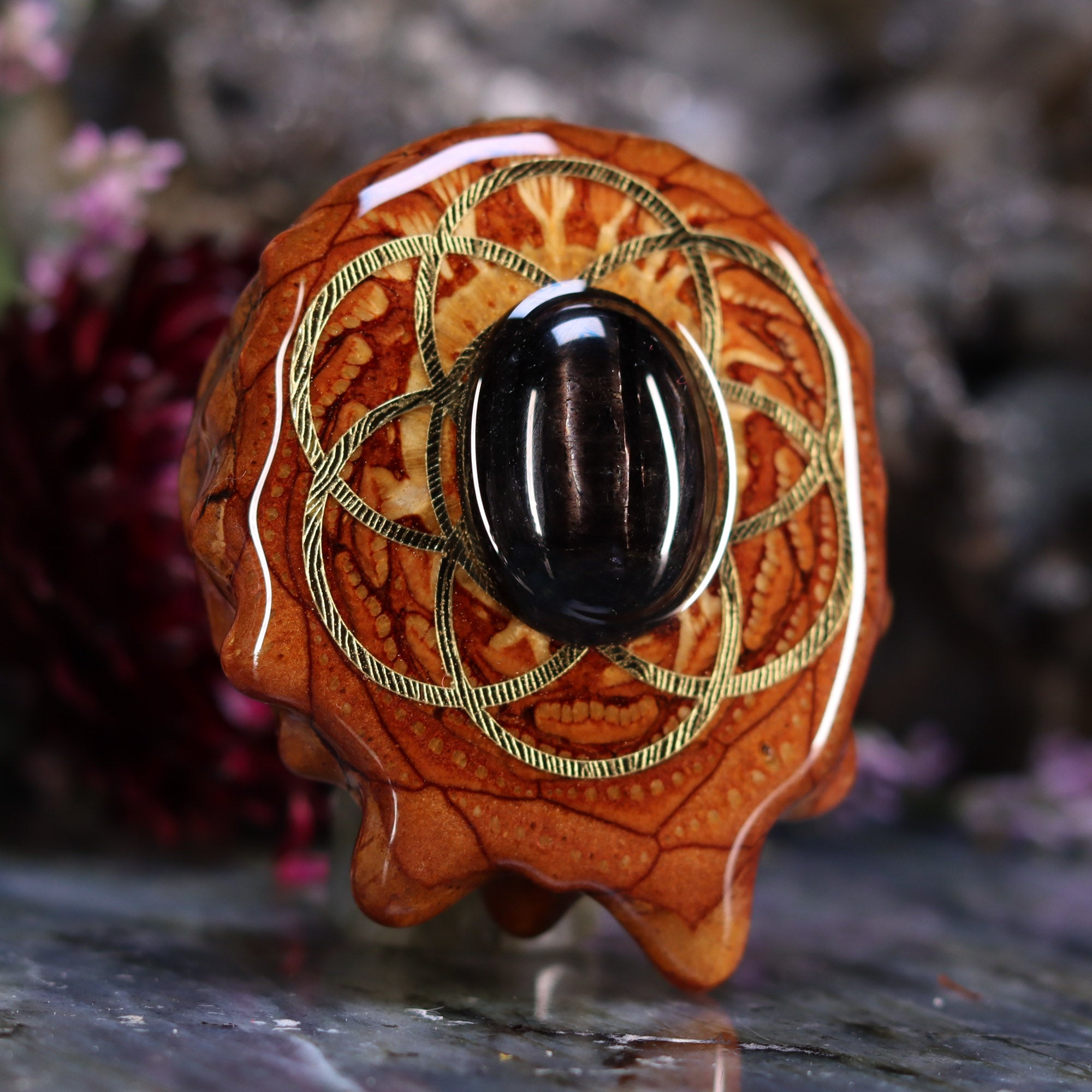 This Pinecone has been blessed with the Seed of Life, cast in 24k Gold. This sacred symbol serves as the foundation or "Seed" for the Flower of Life, and represents the Seven days of Creation.  It depicts the origins of all matter, in geometric perfection, with six circles (the six days of work) resting inside a seventh circle (the day of rest, the sabbath).