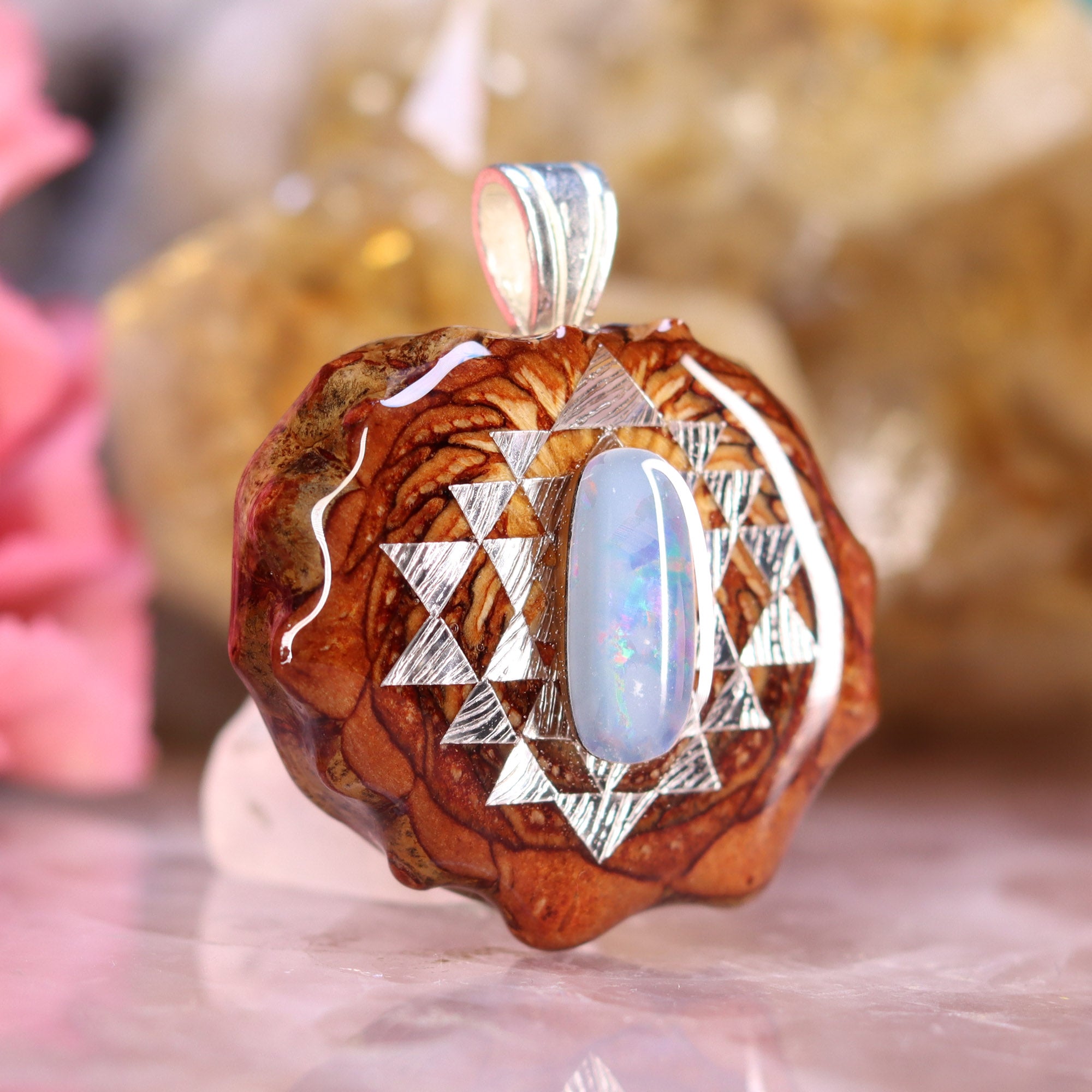 Derived from the Sanskrit word "upala" (meaning "valuable stone"), this stone consists of both colloidal silica and up to 20% water – bringing the fortitude of earth with the unfathomable mystery of water. It is considered to be the crystal of the New Age, and has been beloved by alchemists and mystics throughout the centuries for its ability to facilitate connection to the higher self and to the wisdom of the Ancients. Australian Blue Opal is known to be an emotionally soothing stone that aids in enhancing communication skills and providing one with the courage and freedom to speak their truth.
