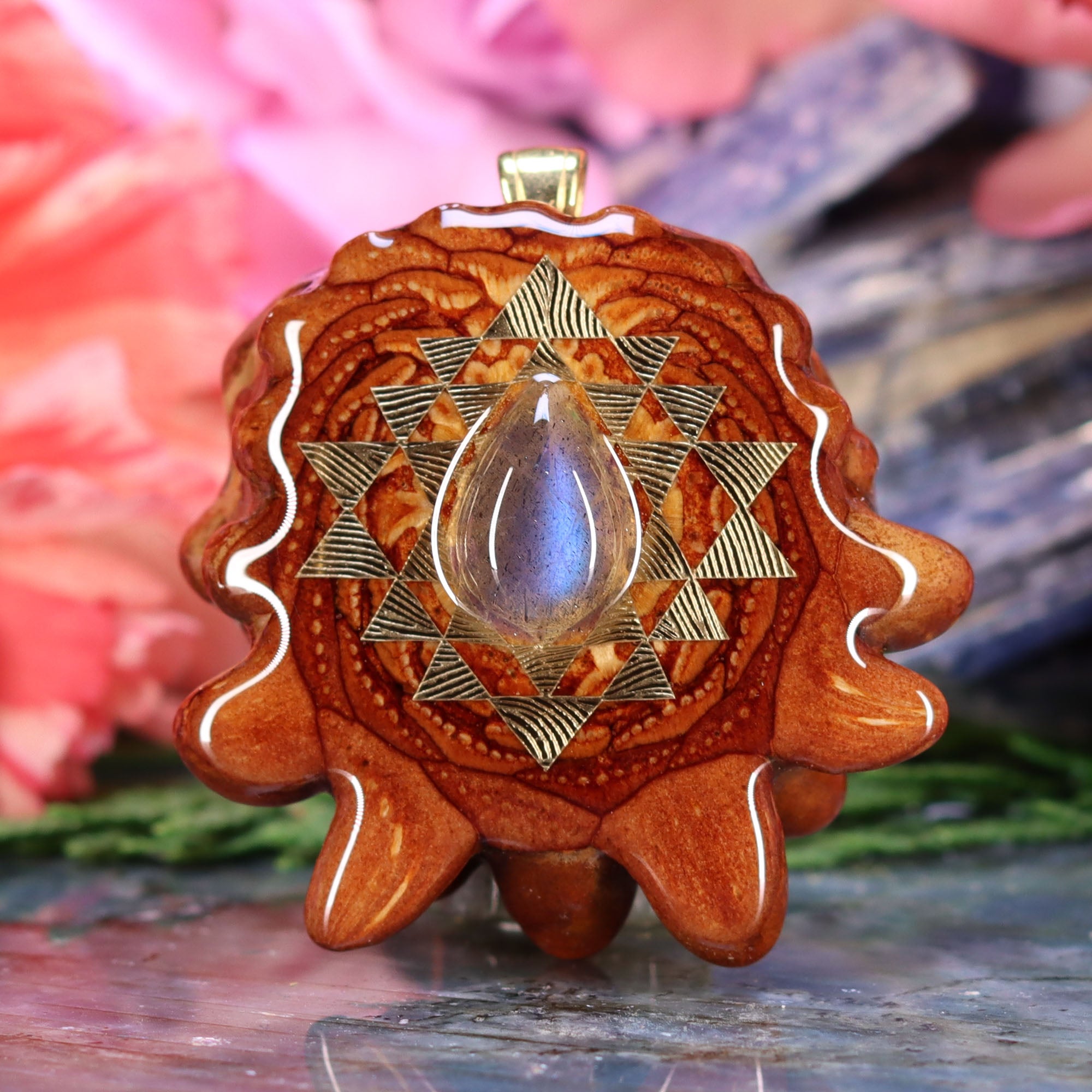 Every pinecone pendant is an elegant gift from Mother Nature -- unveiling the ornate Sacred Geometry hidden at the center of one of the world's densest Pinecones. Because only one cross-section is taken from the "heart" of each Cone, every pendant is absolutely unique, and truly one-of-a-kind.