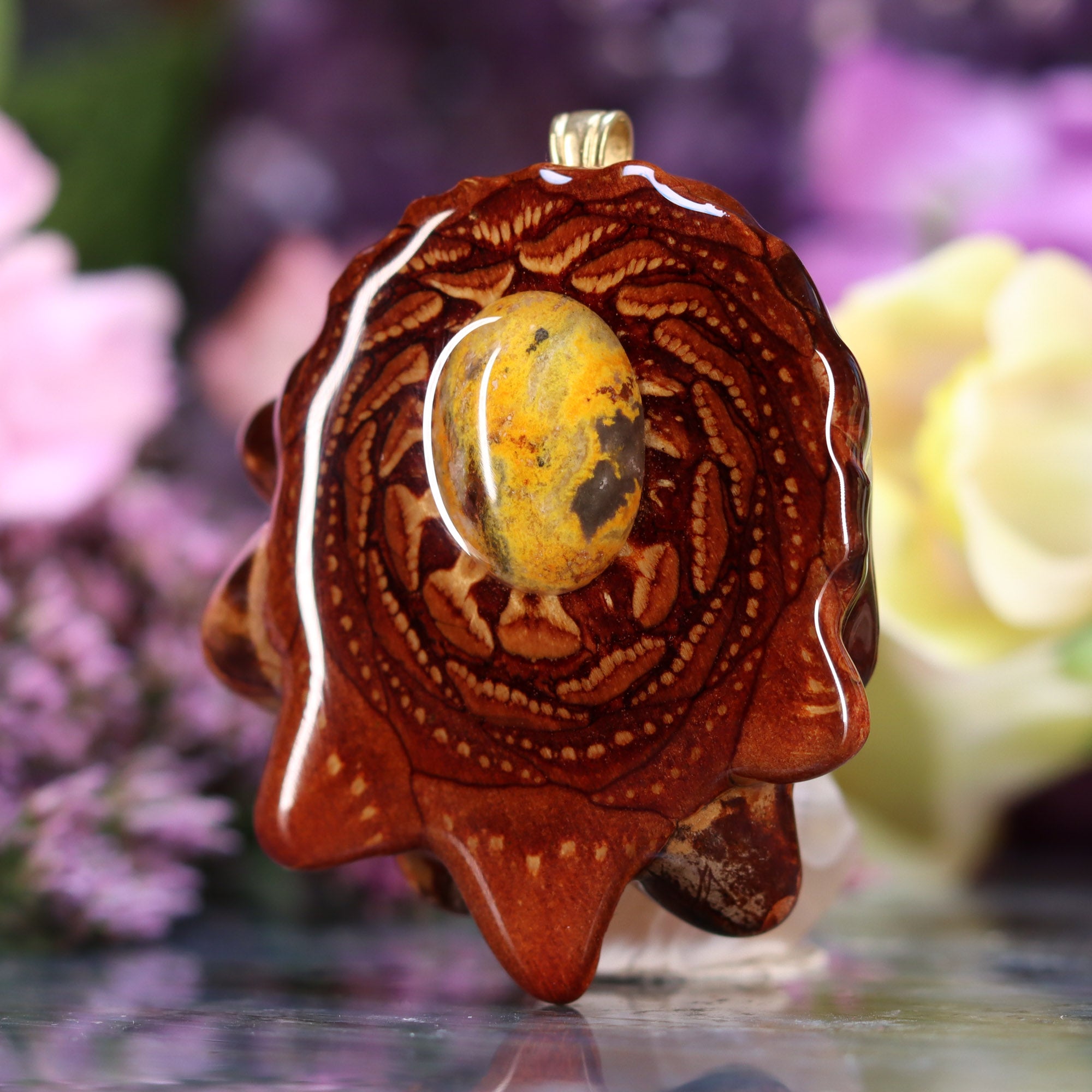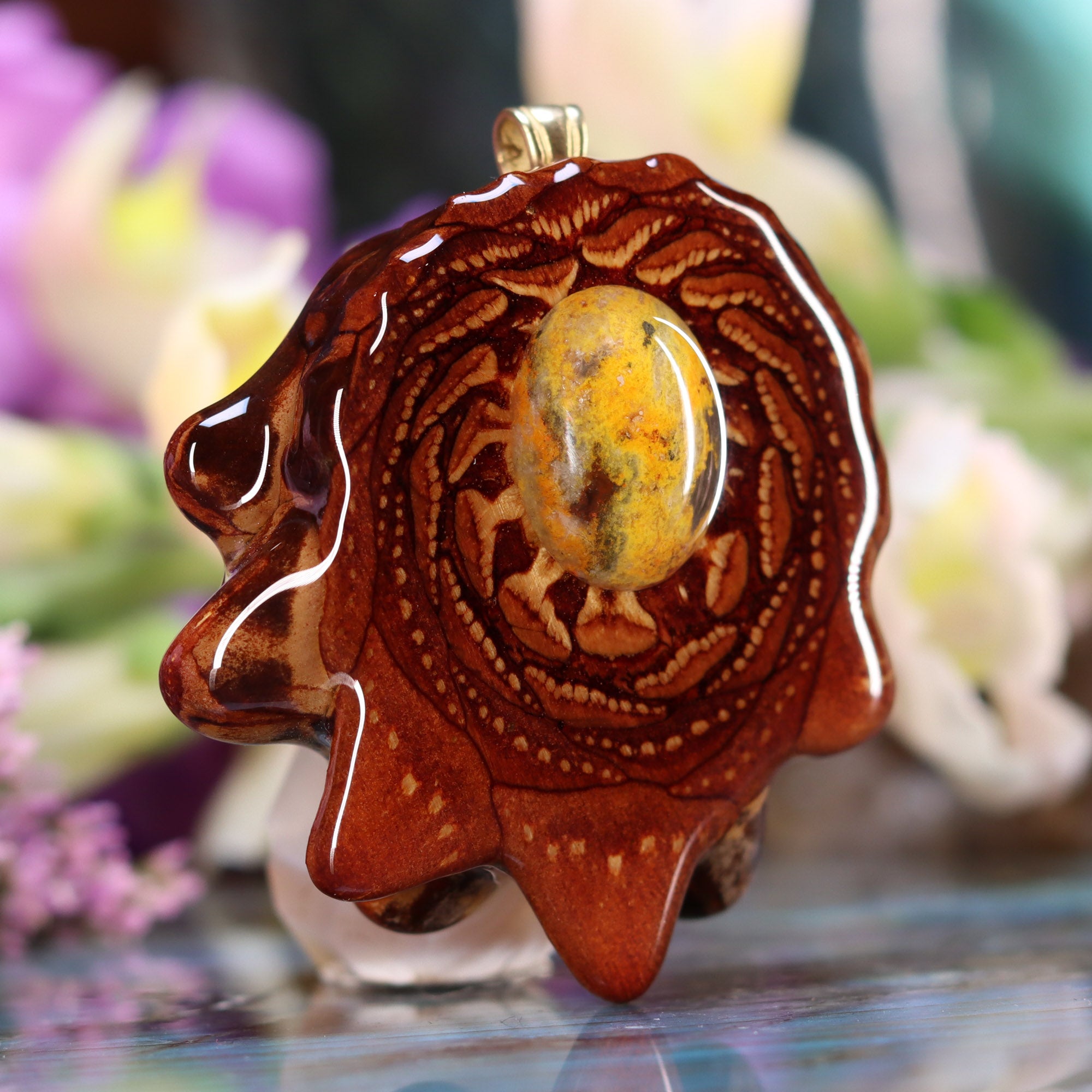 Every pinecone pendant is an elegant gift from Mother Nature -- unveiling the ornate Sacred Geometry hidden at the center of one of the world's densest Pinecones. Because only one cross-section is taken from the "heart" of each Cone, every pendant is absolutely unique, and truly one-of-a-kind.