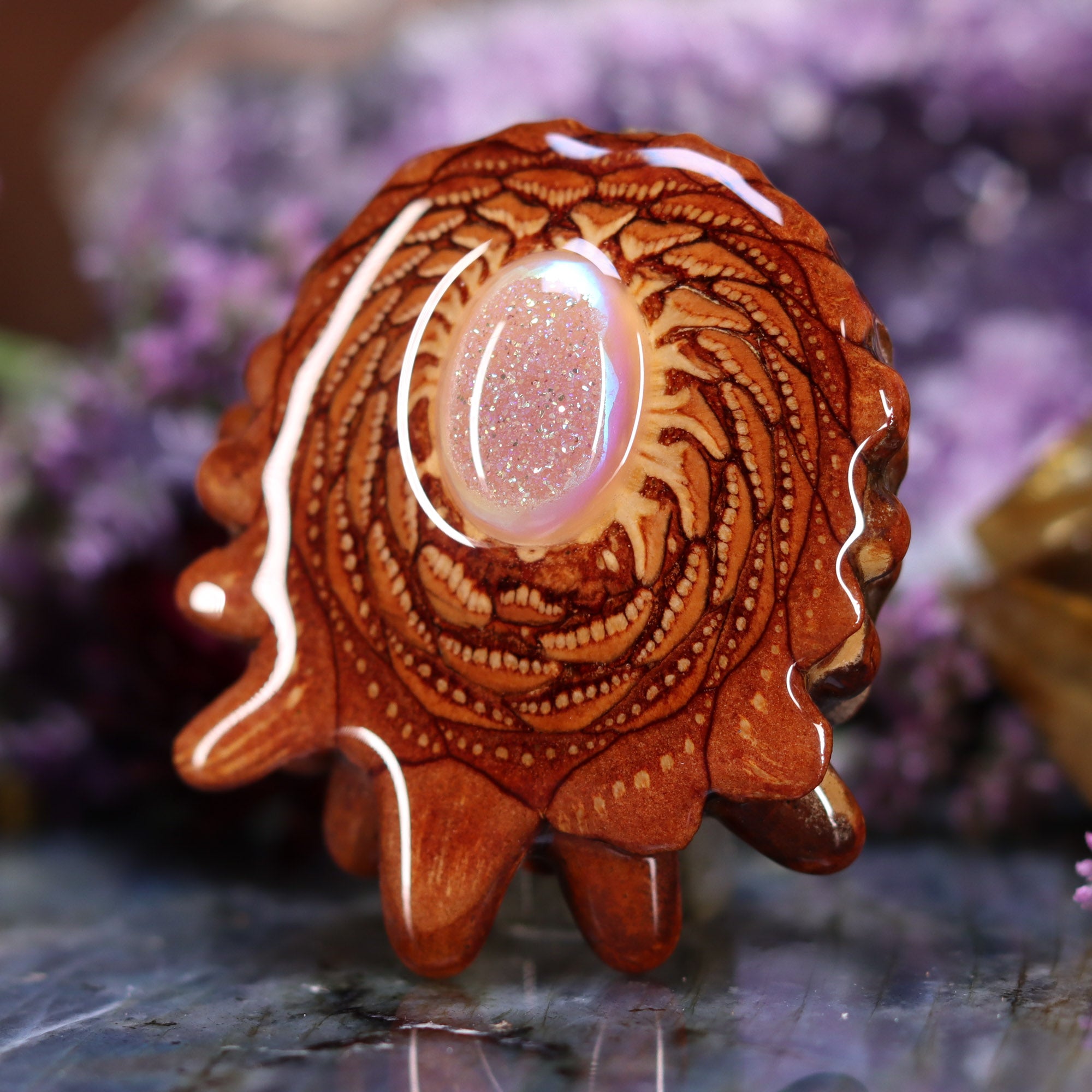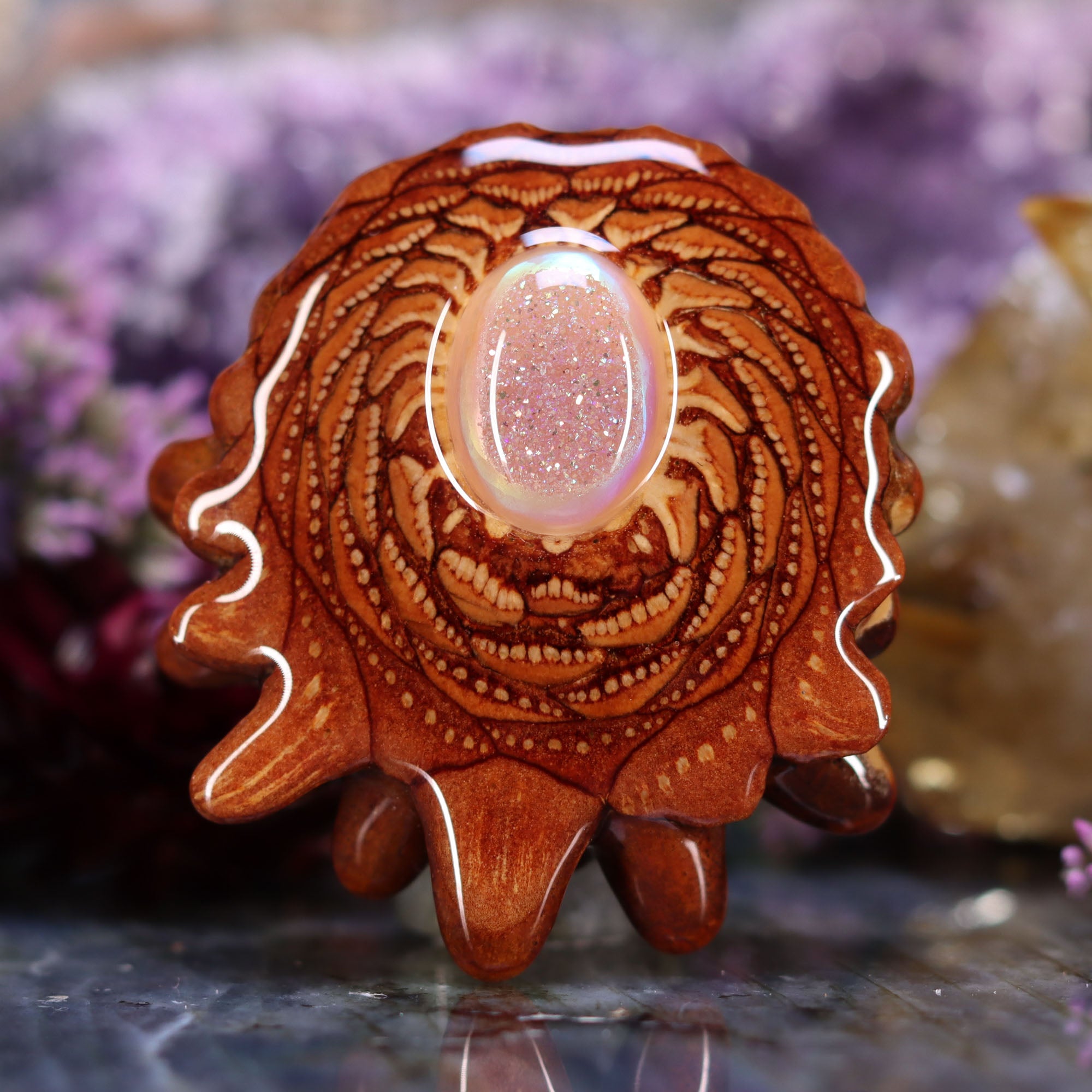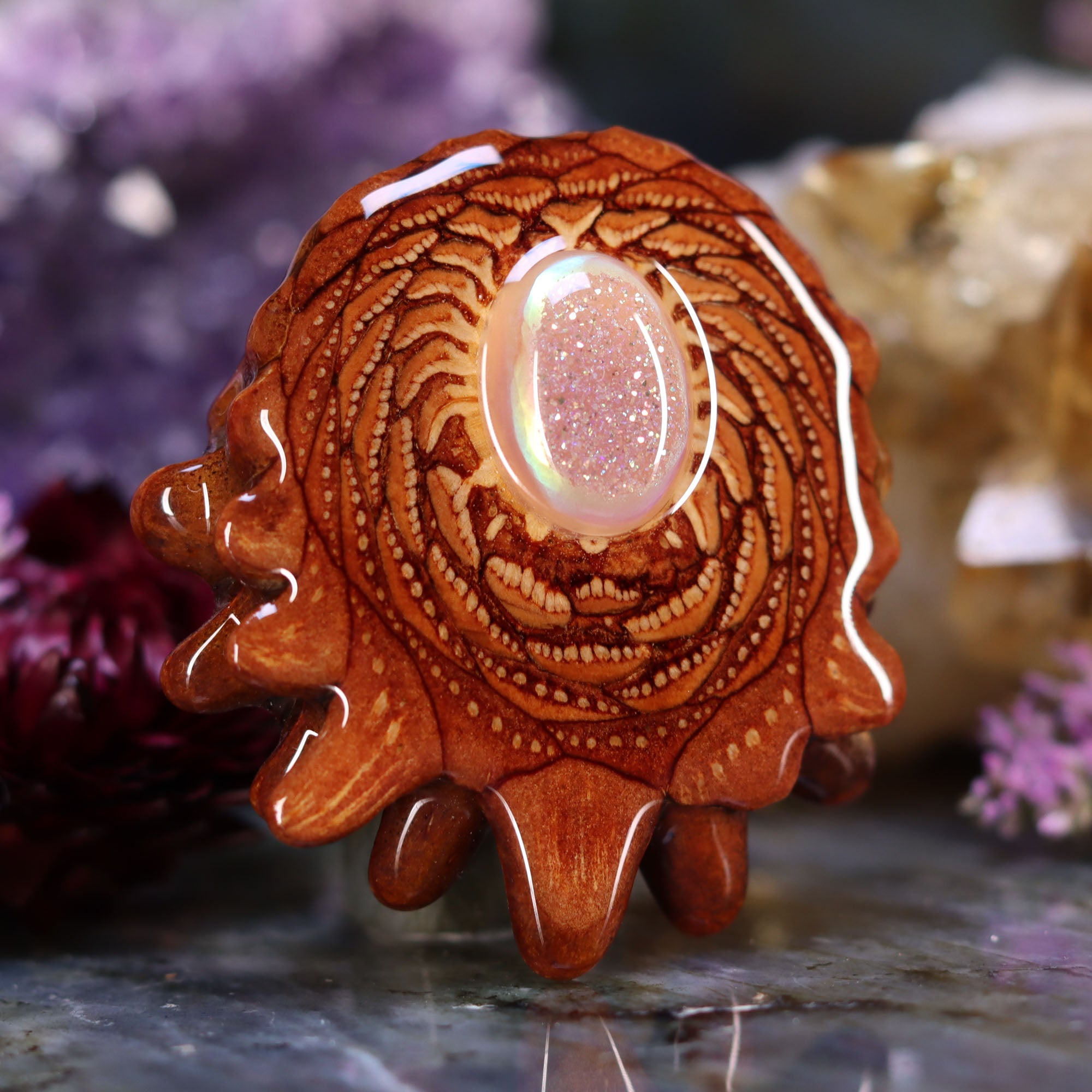 Every pinecone pendant is an elegant gift from Mother Nature -- unveiling the ornate Sacred Geometry hidden at the center of one of the world's densest Pinecones. Because only one cross-section is taken from the "heart" of each Cone, every pendant is absolutely unique, and truly one-of-a-kind.