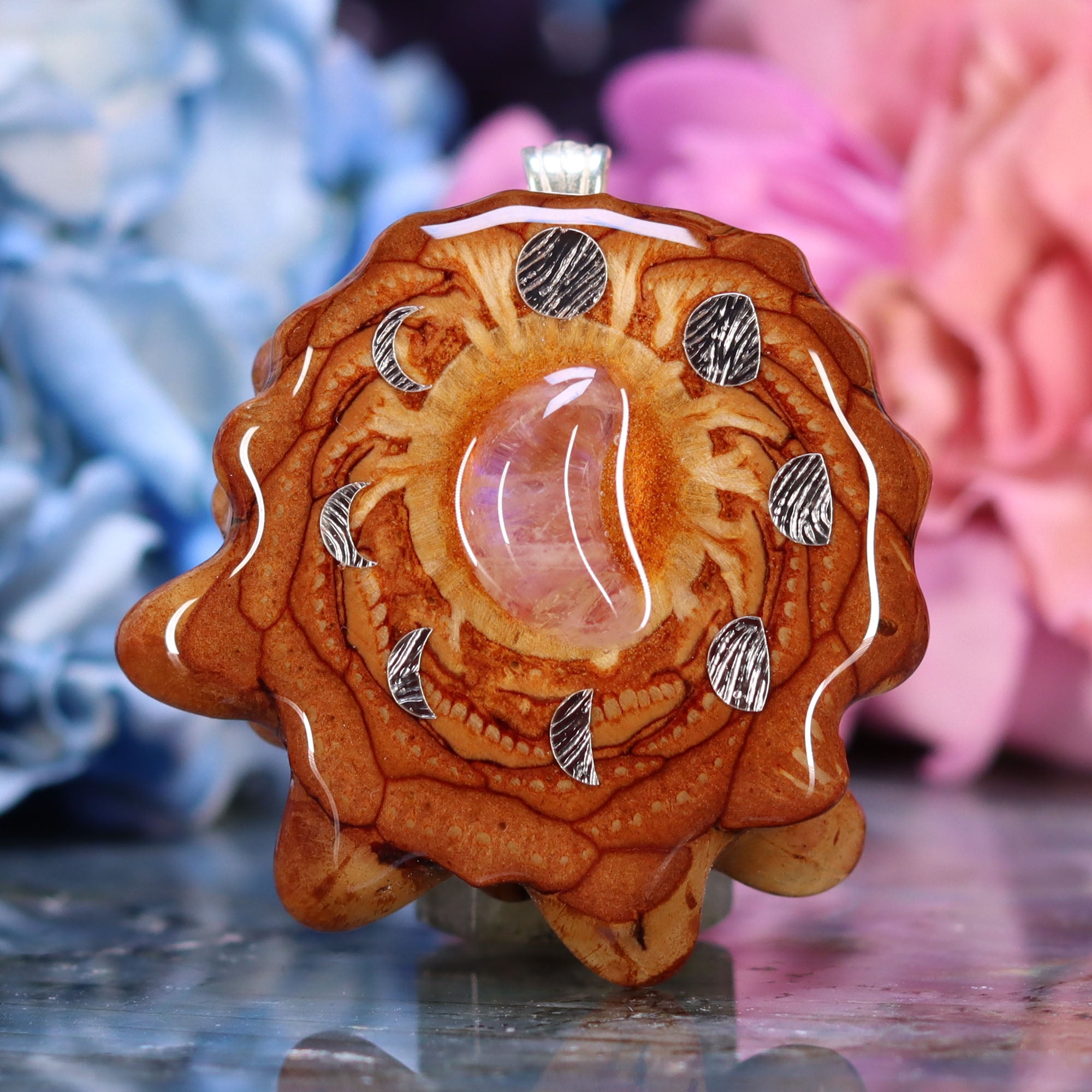 This Pinecone has been blessed with the Moon Cycles, cast in Sterling Silver. The moon has long been held as a sacred symbol for rebirth and change with each phase bringing new opportunities for growth.