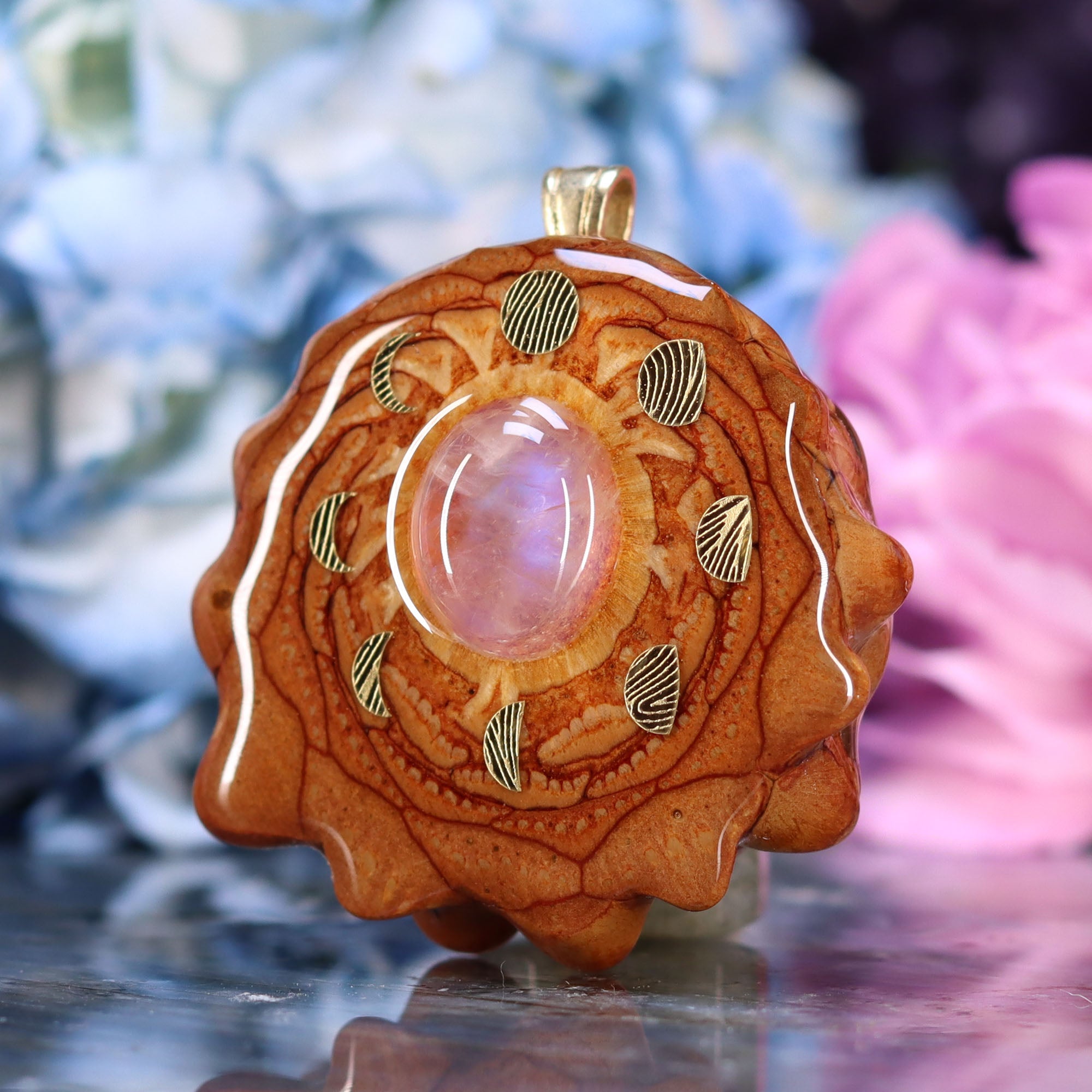 Every pinecone pendant is an elegant gift from Mother Nature -- unveiling the ornate Sacred Geometry hidden at the center of one of the world's densest Pinecones. Because only one cross-section is taken from the "heart" of each Cone, every pendant is absolutely unique, and truly one-of-a-kind.