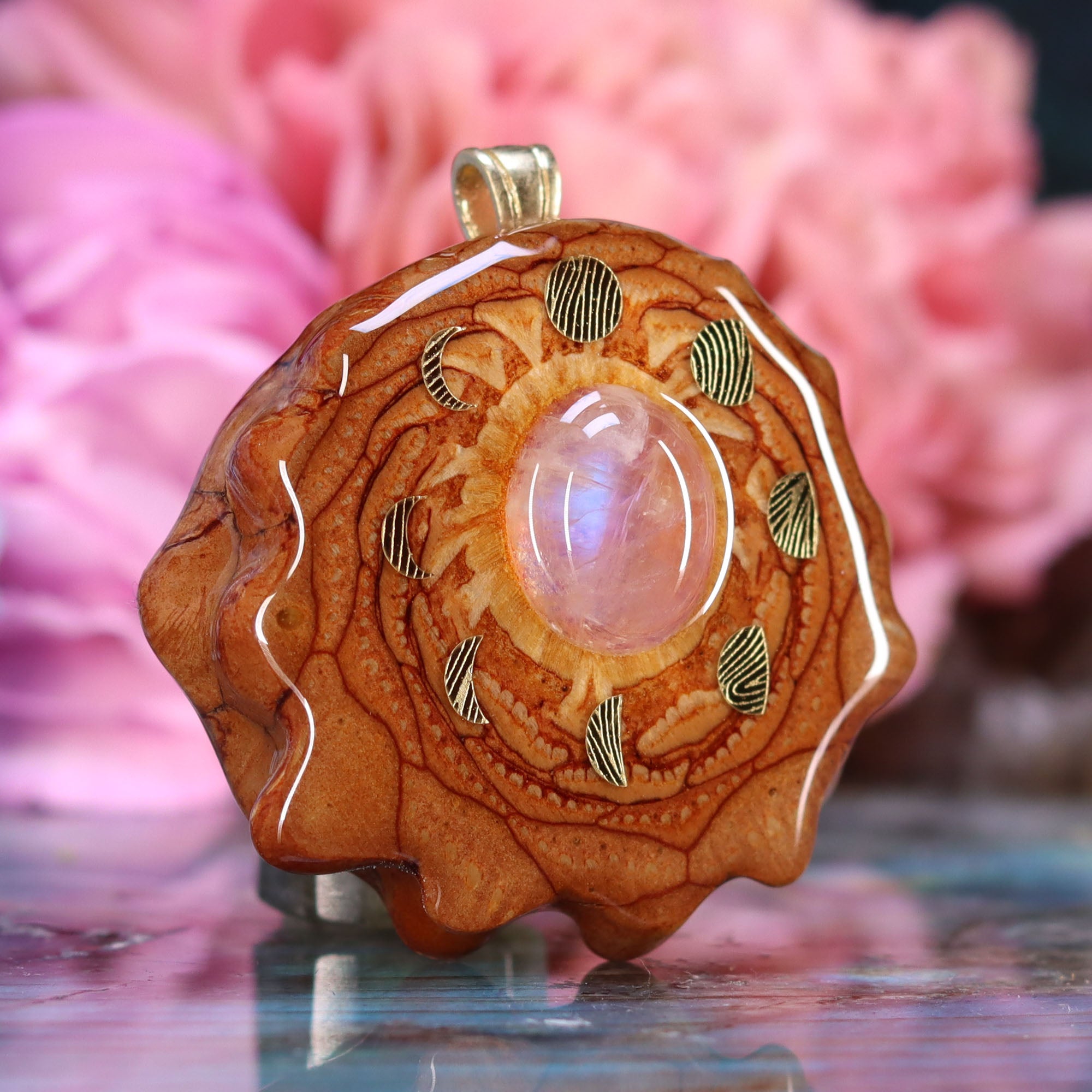 As its name suggests, Moonstone is strongly connected to the archetypal feminine energies of the moon, intuition, and empathy. It helps reconnect with the softness and wisdom of the great mother if one gets caught up in stress, fixation, or aggression. It is recognized as a powerful tool to make conscious the unconscious, and traditionally has been worn as a pendant to encourage the fruition of one's psychic gifts, as well as to facilitate lucid dreaming.