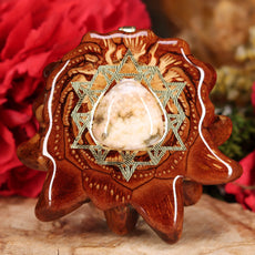 This Pinecone has been blessed with the Seed of Life, cast in 24k Gold. This sacred symbol serves as the foundation or "Seed" for the Flower of Life, and represents the Seven days of Creation. It depicts the origins of all matter, in geometric perfection, with six circles (the six days of work) resting inside a seventh circle (the day of rest, the sabbath).