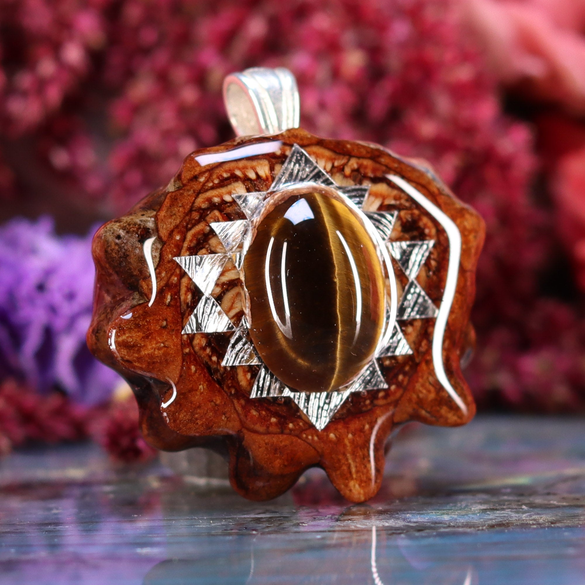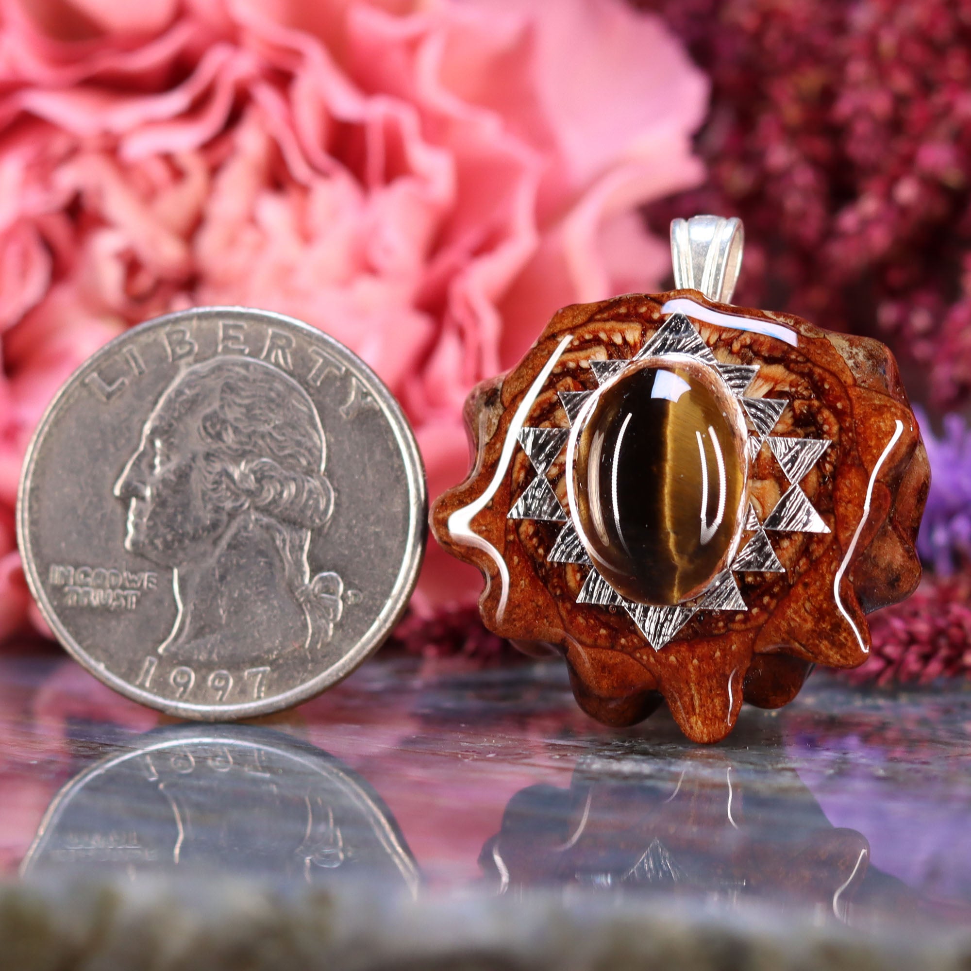 Every pinecone pendant is an elegant gift from Mother Nature -- unveiling the ornate Sacred Geometry hidden at the center of one of the world's densest Pinecones. Because only one cross-section is taken from the "heart" of each Cone, every pendant is absolutely unique, and truly one-of-a-kind.