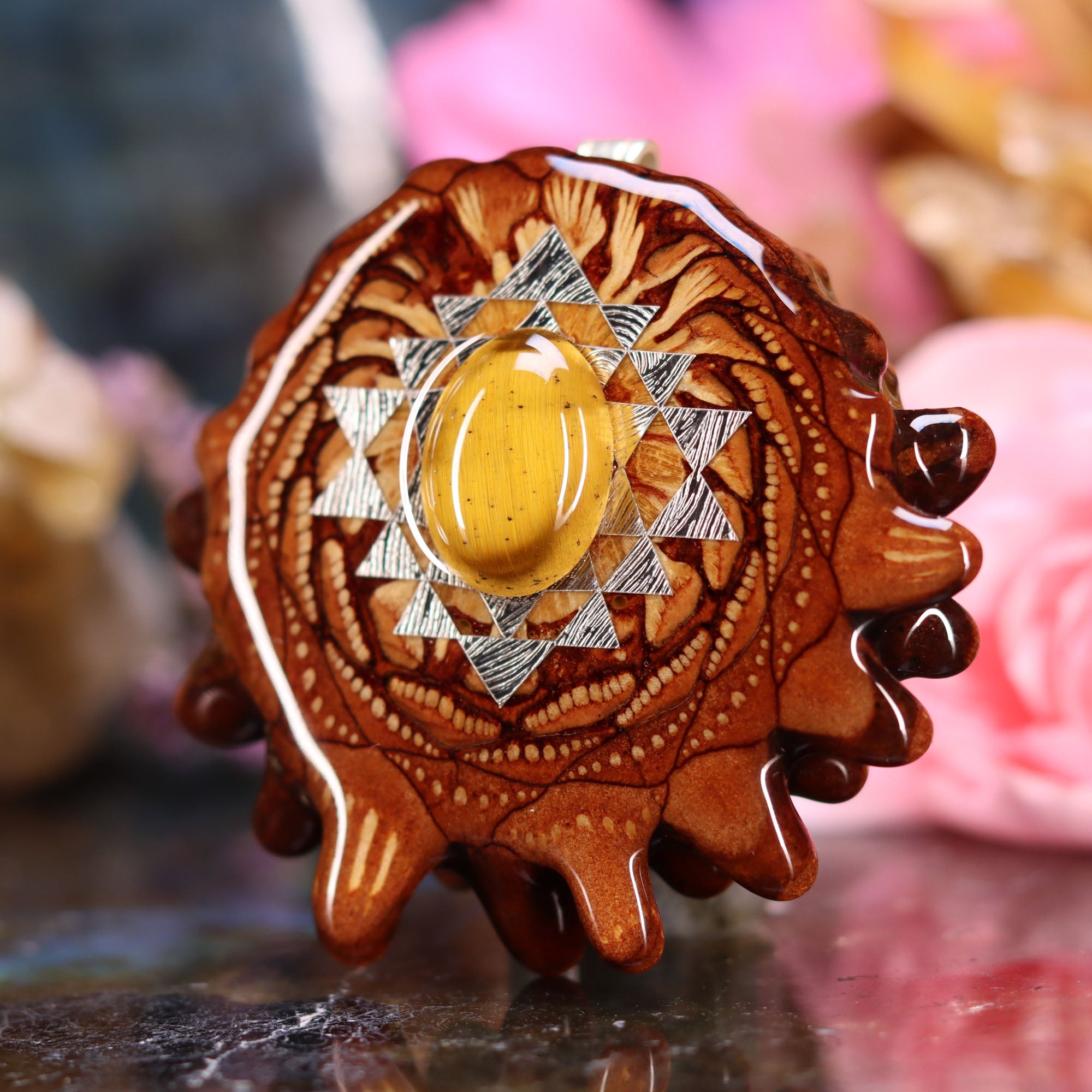 Every pinecone pendant is an elegant gift from Mother Nature -- unveiling the ornate Sacred Geometry hidden at the center of one of the world's densest Pinecones. Because only one cross-section is taken from the "heart" of each Cone, every pendant is absolutely unique, and truly one-of-a-kind.