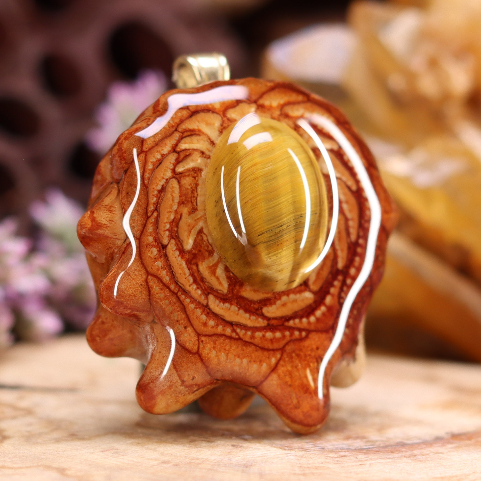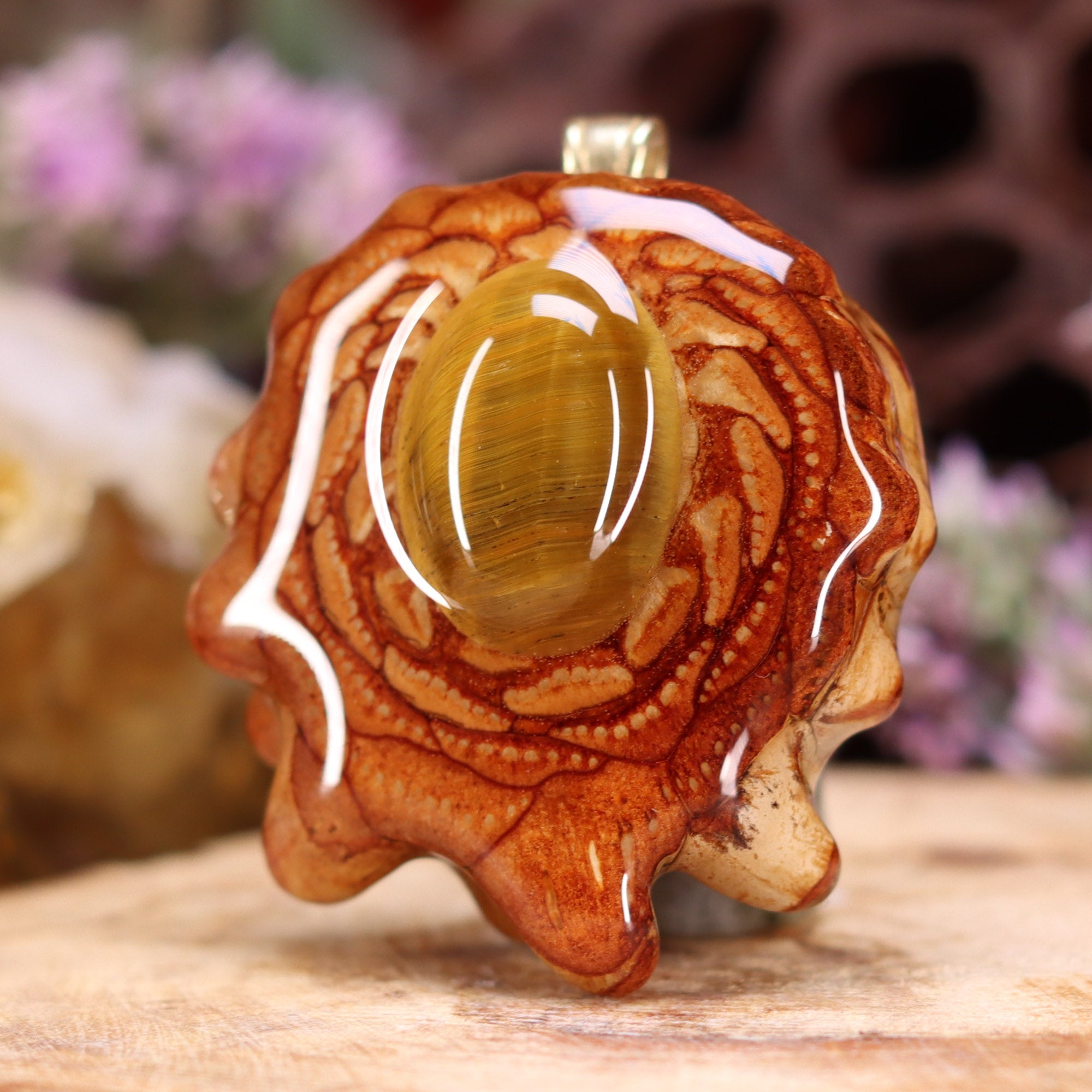 Every pinecone pendant is an elegant gift from Mother Nature -- unveiling the ornate Sacred Geometry hidden at the center of one of the world's densest Pinecones. Because only one cross-section is taken from the "heart" of each Cone, every pendant is absolutely unique, and truly one-of-a-kind.