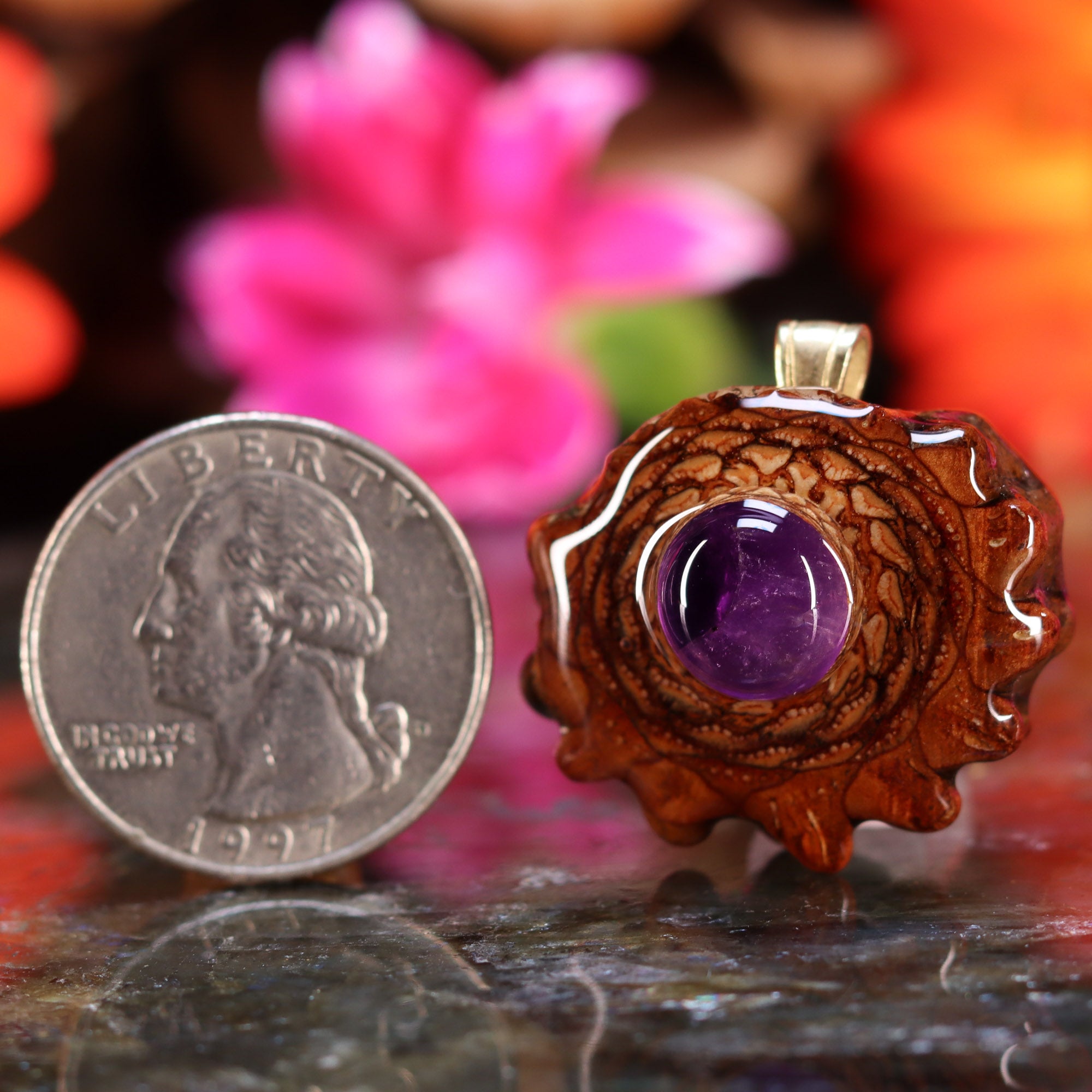 Every pinecone pendant is an elegant gift from Mother Nature -- unveiling the ornate Sacred Geometry hidden at the center of one of the world's densest Pinecones. Because only one cross-section is taken from the "heart" of each Cone, every pendant is absolutely unique, and truly one-of-a-kind.