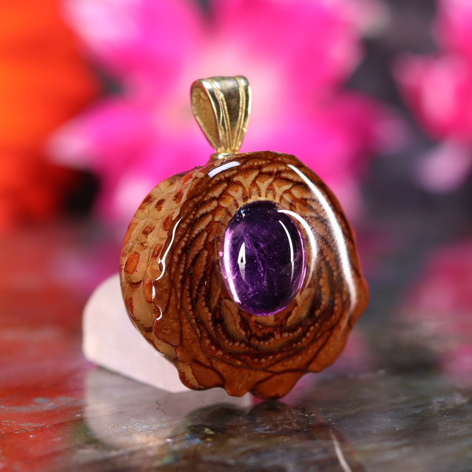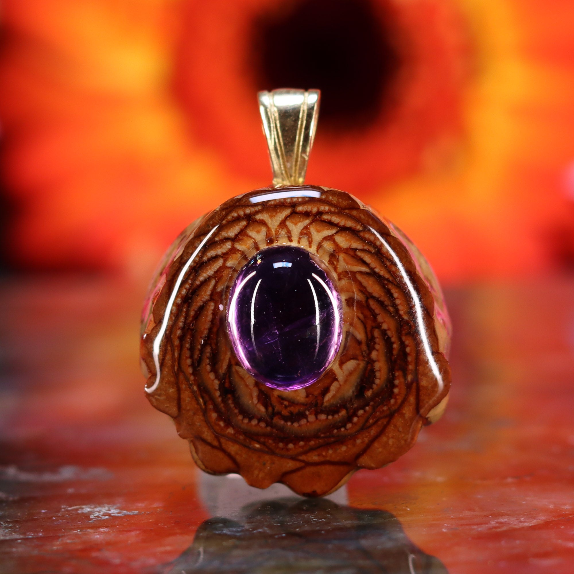 Every pinecone pendant is an elegant gift from Mother Nature -- unveiling the ornate Sacred Geometry hidden at the center of one of the world's densest Pinecones. Because only one cross-section is taken from the "heart" of each Cone, every pendant is absolutely unique, and truly one-of-a-kind.