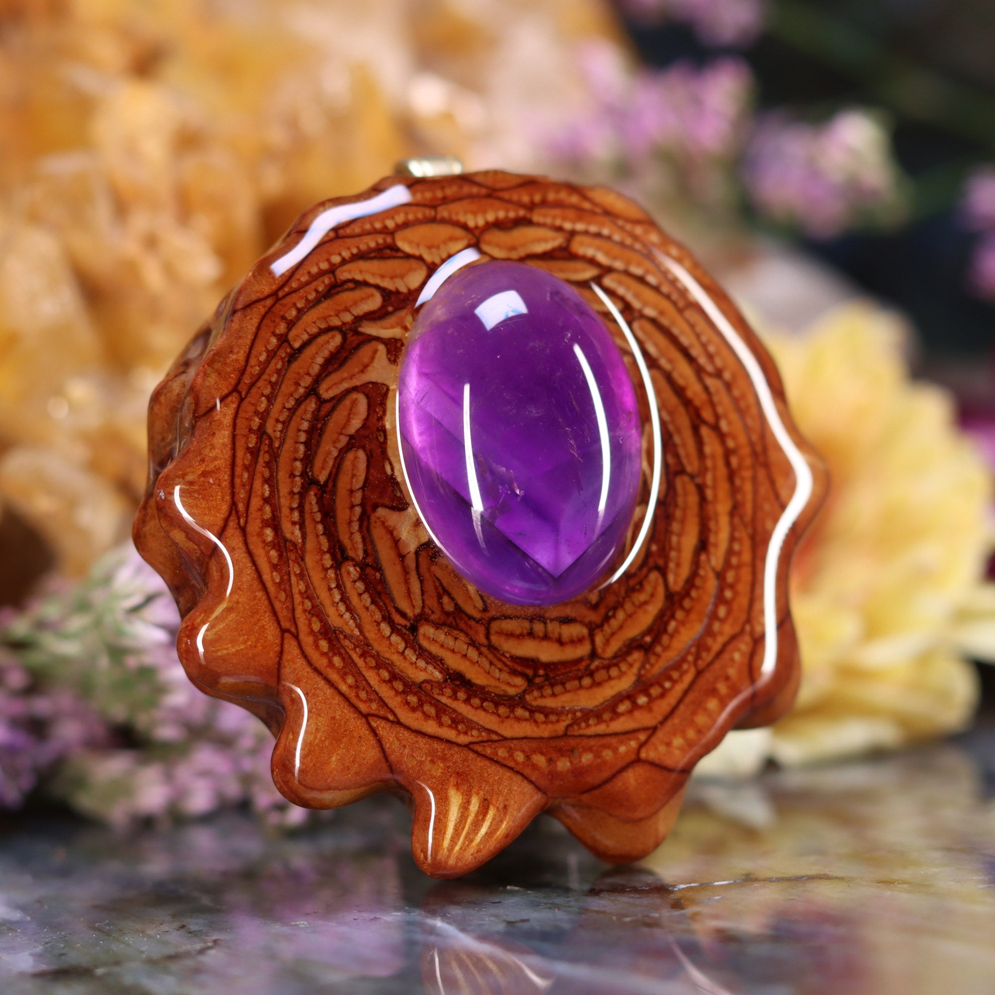 Every pinecone pendant is an elegant gift from Mother Nature -- unveiling the ornate Sacred Geometry hidden at the center of one of the world's densest Pinecones. Because only one cross-section is taken from the "heart" of each Cone, every pendant is absolutely unique, and truly one-of-a-kind.