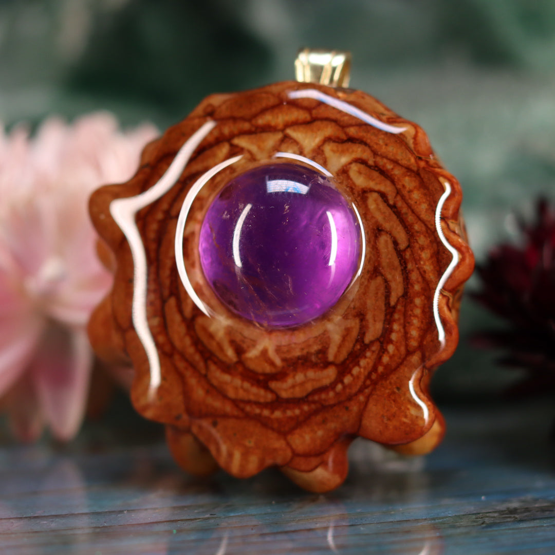 Every pinecone pendant is an elegant gift from Mother Nature -- unveiling the ornate Sacred Geometry hidden at the center of one of the world's densest Pinecones. Because only one cross-section is taken from the "heart" of each Cone, every pendant is absolutely unique, and truly one-of-a-kind.