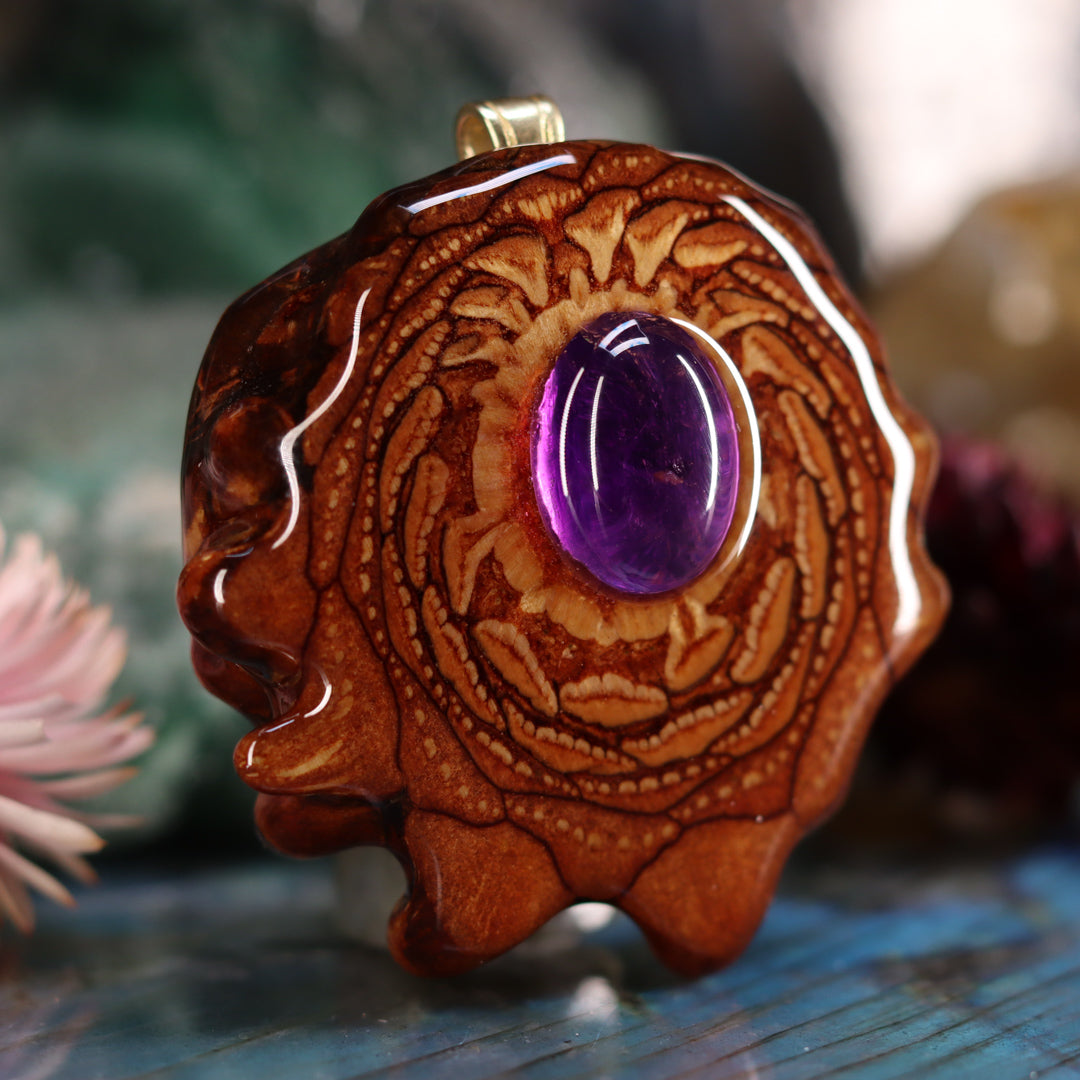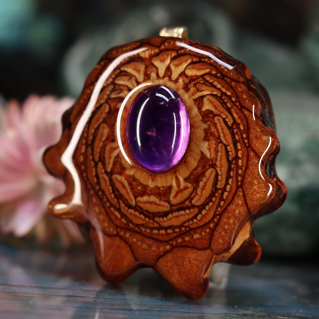 Every pinecone pendant is an elegant gift from Mother Nature -- unveiling the ornate Sacred Geometry hidden at the center of one of the world's densest Pinecones. Because only one cross-section is taken from the "heart" of each Cone, every pendant is absolutely unique, and truly one-of-a-kind.