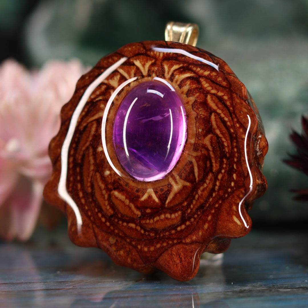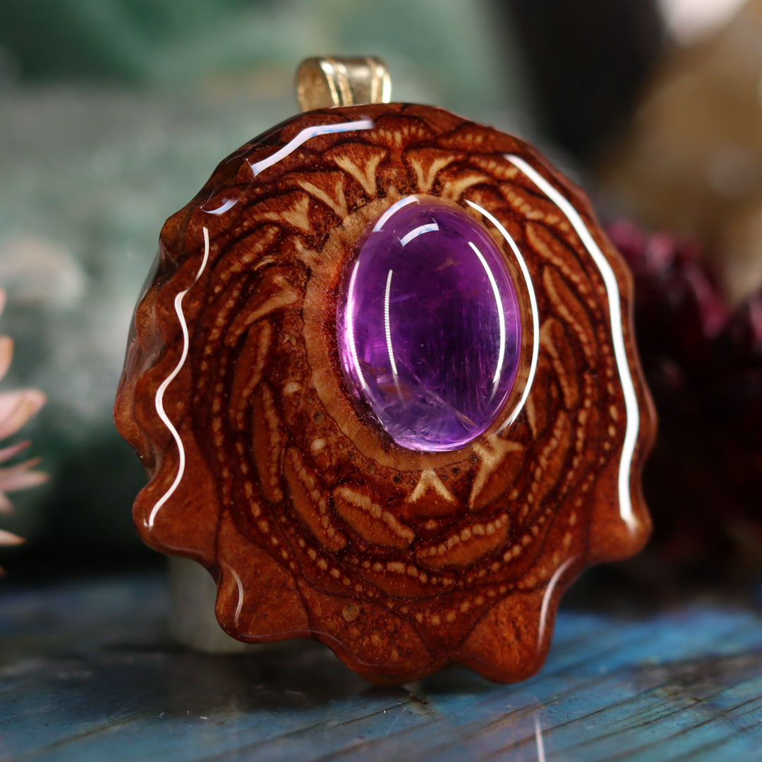 Every pinecone pendant is an elegant gift from Mother Nature -- unveiling the ornate Sacred Geometry hidden at the center of one of the world's densest Pinecones. Because only one cross-section is taken from the "heart" of each Cone, every pendant is absolutely unique, and truly one-of-a-kind.
