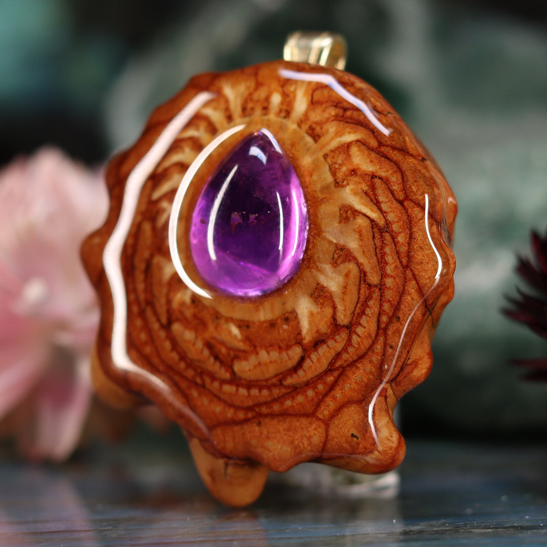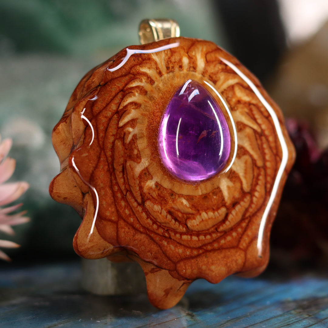 Every pinecone pendant is an elegant gift from Mother Nature -- unveiling the ornate Sacred Geometry hidden at the center of one of the world's densest Pinecones. Because only one cross-section is taken from the "heart" of each Cone, every pendant is absolutely unique, and truly one-of-a-kind.