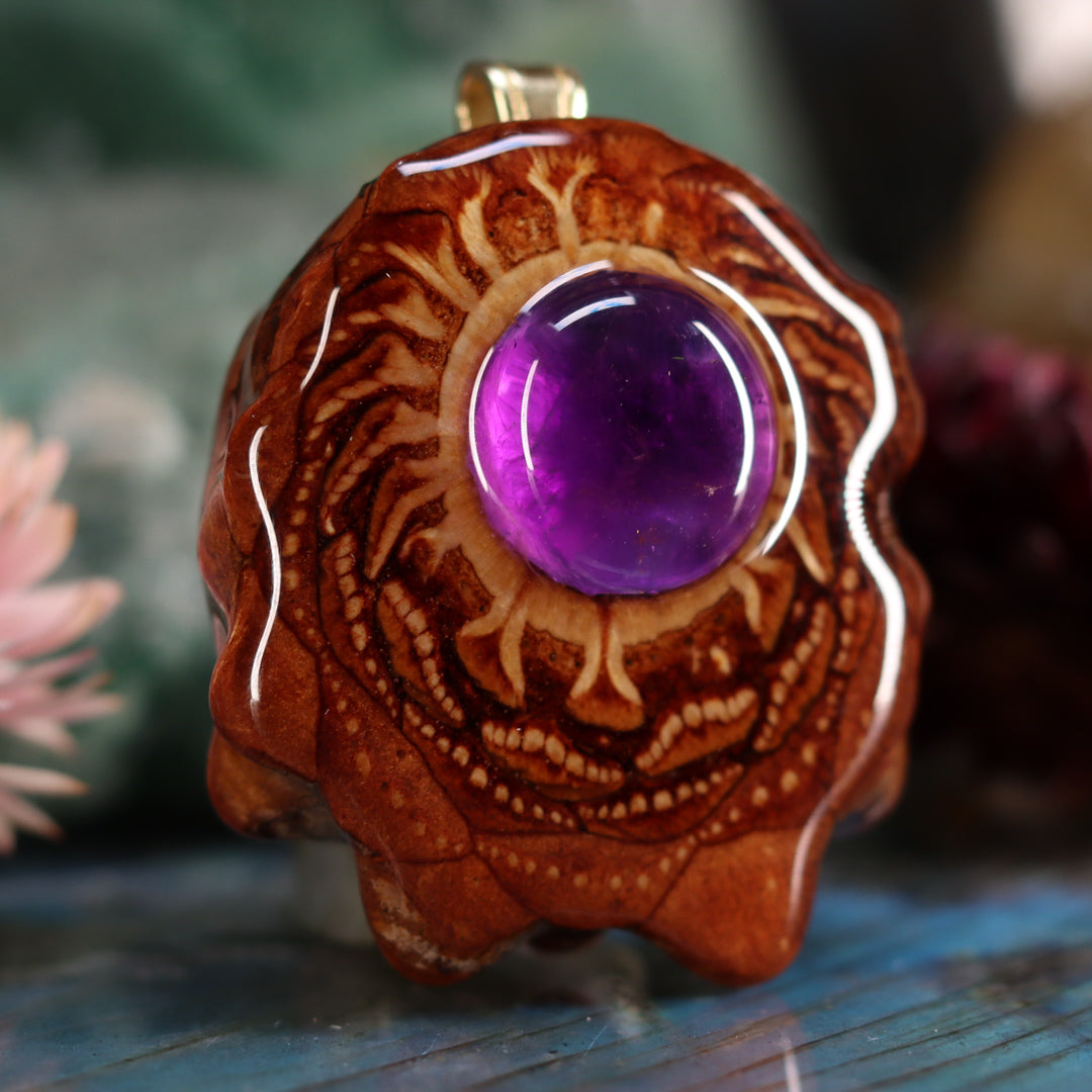 Every pinecone pendant is an elegant gift from Mother Nature -- unveiling the ornate Sacred Geometry hidden at the center of one of the world's densest Pinecones. Because only one cross-section is taken from the "heart" of each Cone, every pendant is absolutely unique, and truly one-of-a-kind.
