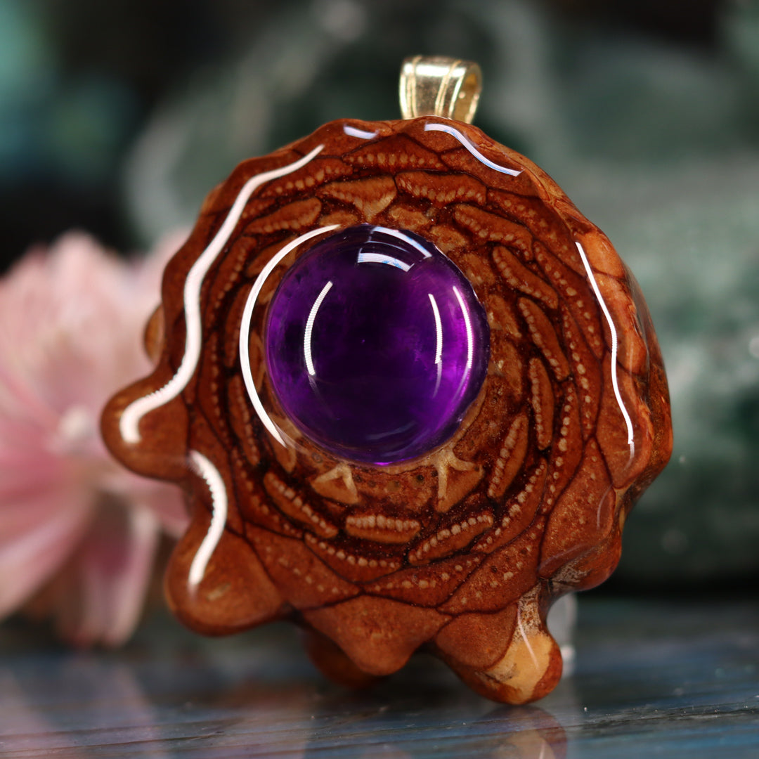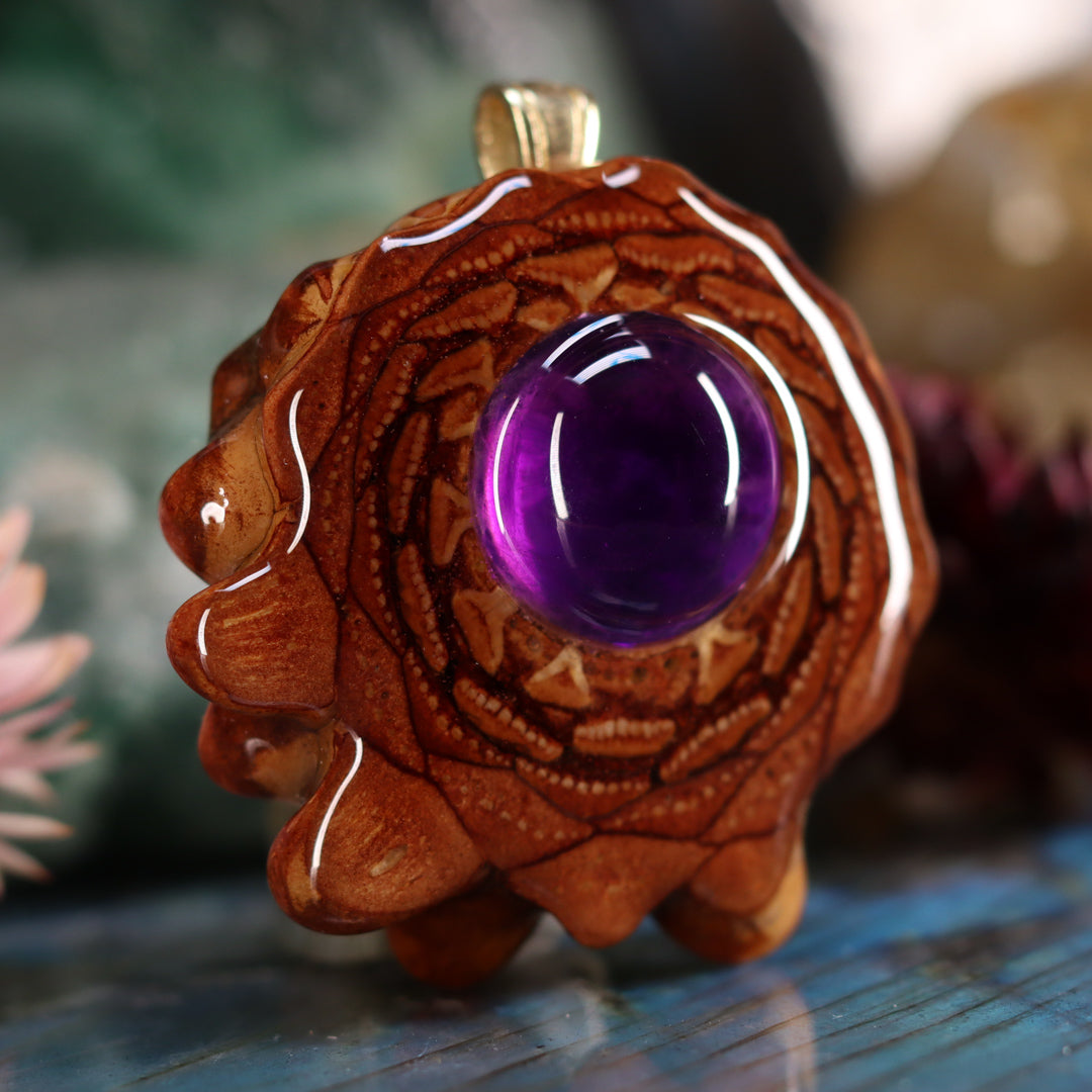 Every pinecone pendant is an elegant gift from Mother Nature -- unveiling the ornate Sacred Geometry hidden at the center of one of the world's densest Pinecones. Because only one cross-section is taken from the "heart" of each Cone, every pendant is absolutely unique, and truly one-of-a-kind.