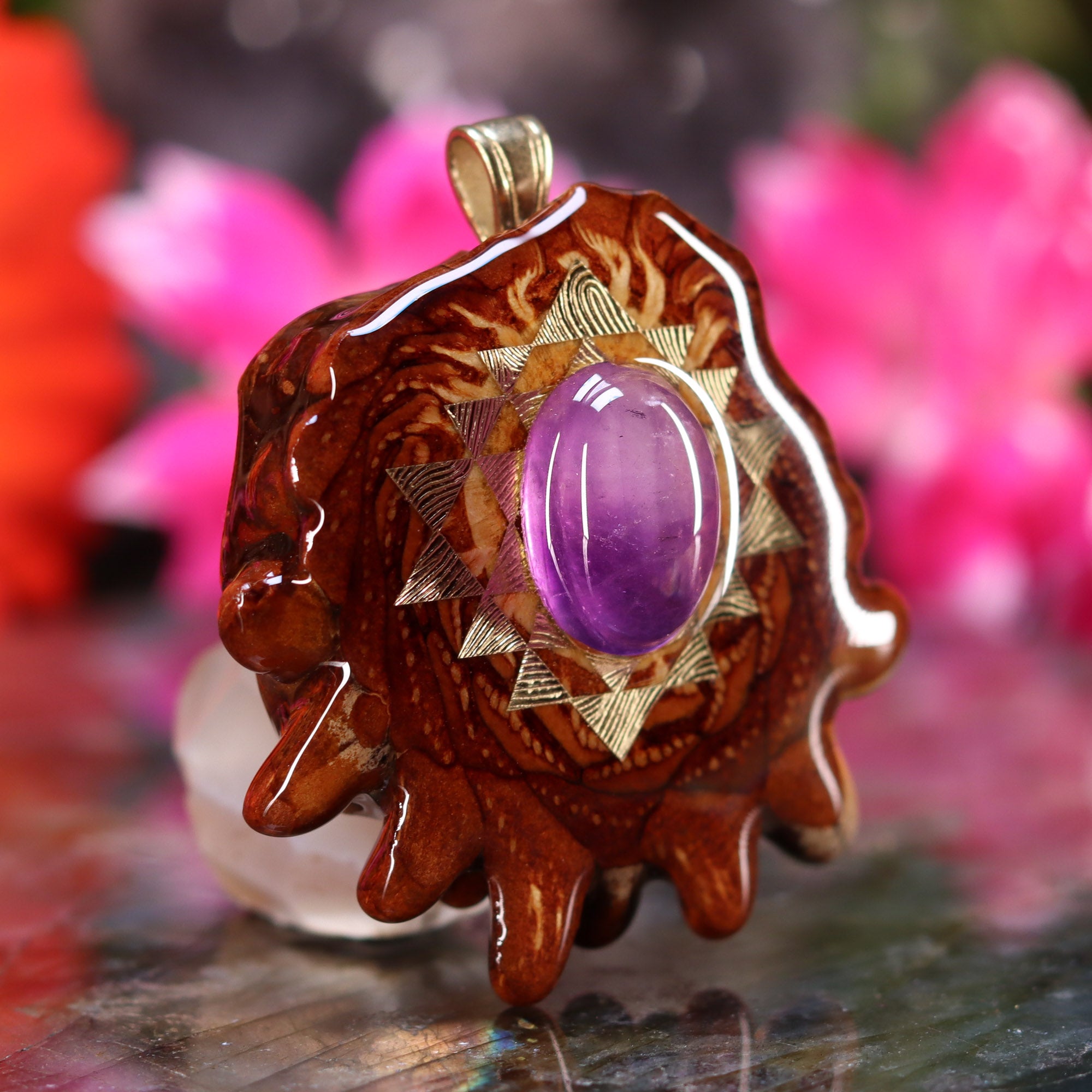 Every pinecone pendant is an elegant gift from Mother Nature -- unveiling the ornate Sacred Geometry hidden at the center of one of the world's densest Pinecones. Because only one cross-section is taken from the "heart" of each Cone, every pendant is absolutely unique, and truly one-of-a-kind.