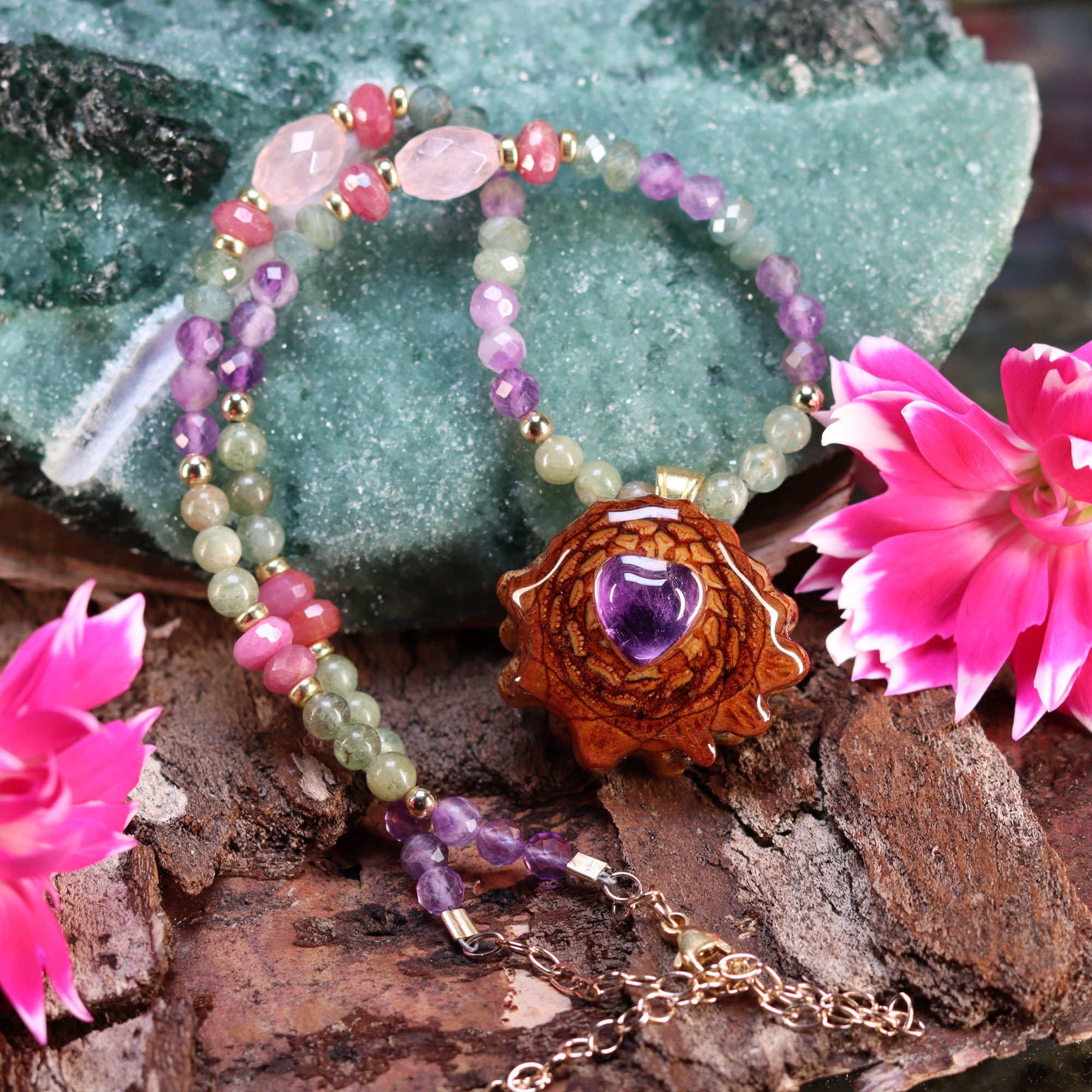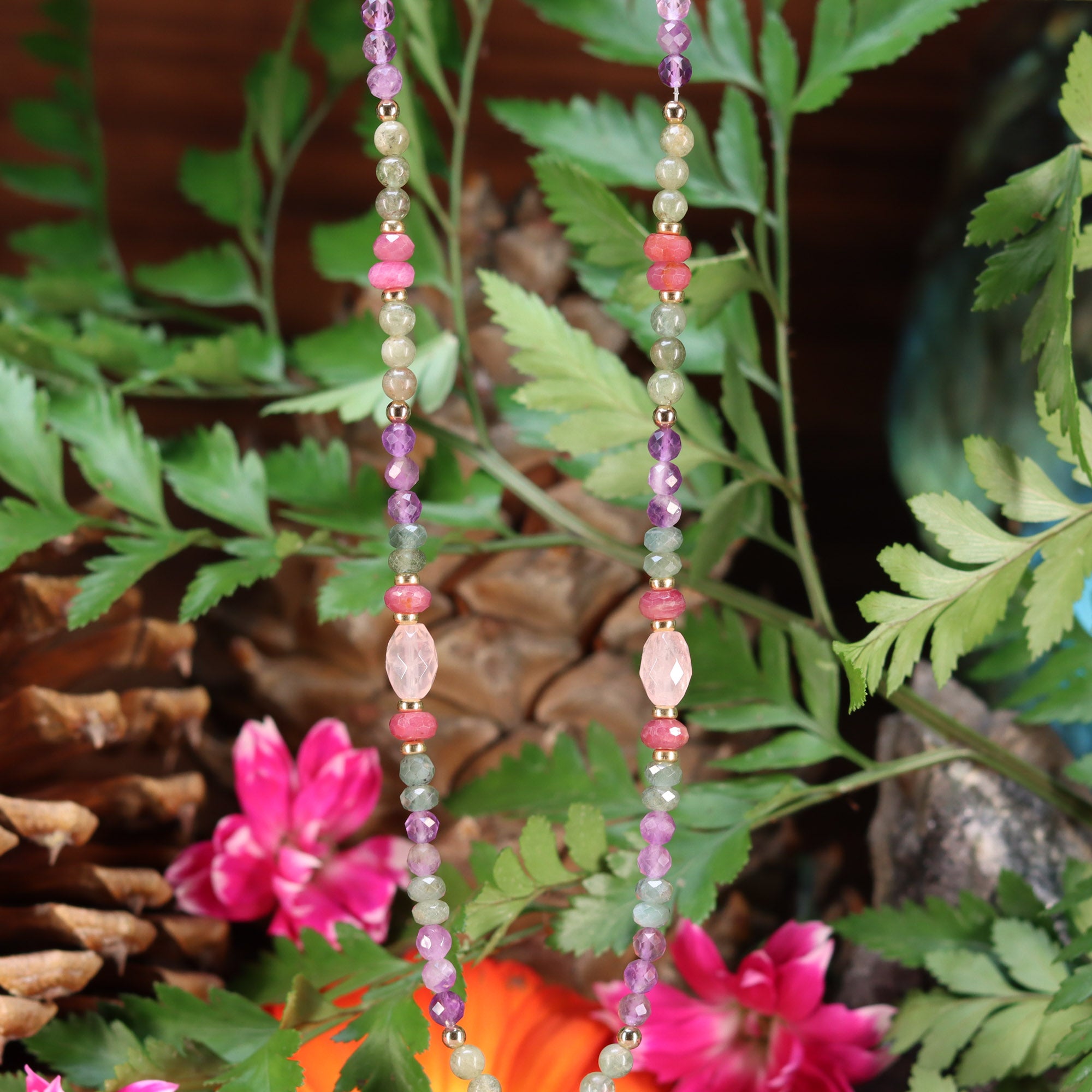 This necklace measures 12.5-17 inches (32-43 cm) and features an Amethyst Heart pendant lovingly strung with a 4.5-inch length-adjustable 14k Gold Fill chain with Aquamarine, Amethyst, Ruby Jade, Rose Quartz and Green Apatite beads to activate and energize body, mind and spirit!