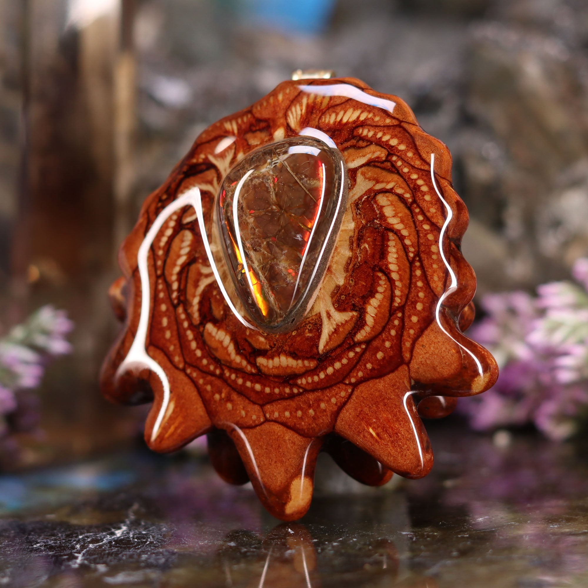 Every pinecone pendant is an elegant gift from Mother Nature -- unveiling the ornate Sacred Geometry hidden at the center of one of the world's densest Pinecones. Because only one cross-section is taken from the "heart" of each Cone, every pendant is absolutely unique, and truly one-of-a-kind.