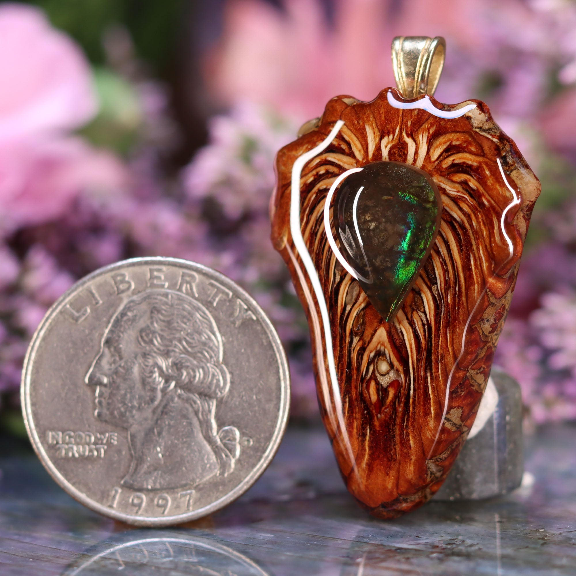 Our *new* Teardrop-style pendants reveal an elegant, angular pattern, only visible within the diagonal cross-section of specifically-shaped Pinecones. Due to the beautiful, diverse patterns displayed on both the front and back of these unique pendants, we’ve photographed both sides of these truly “reversible” new designs!