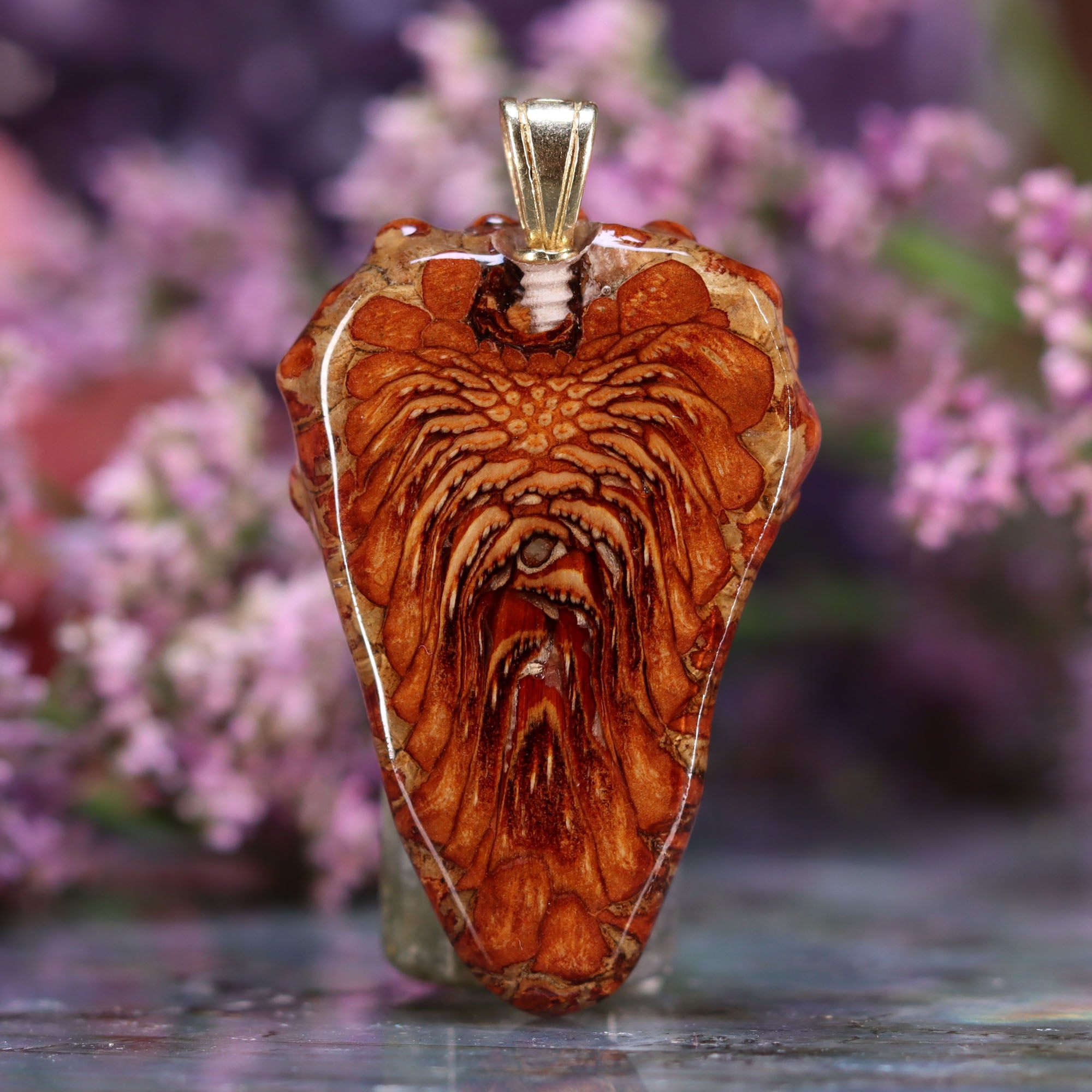 Every pinecone pendant is an elegant gift from Mother Nature -- unveiling the ornate Sacred Geometry hidden at the center of one of the world's densest Pinecones. Because only one cross-section is taken from the "heart" of each Cone, every pendant is absolutely unique, and truly one-of-a-kind.