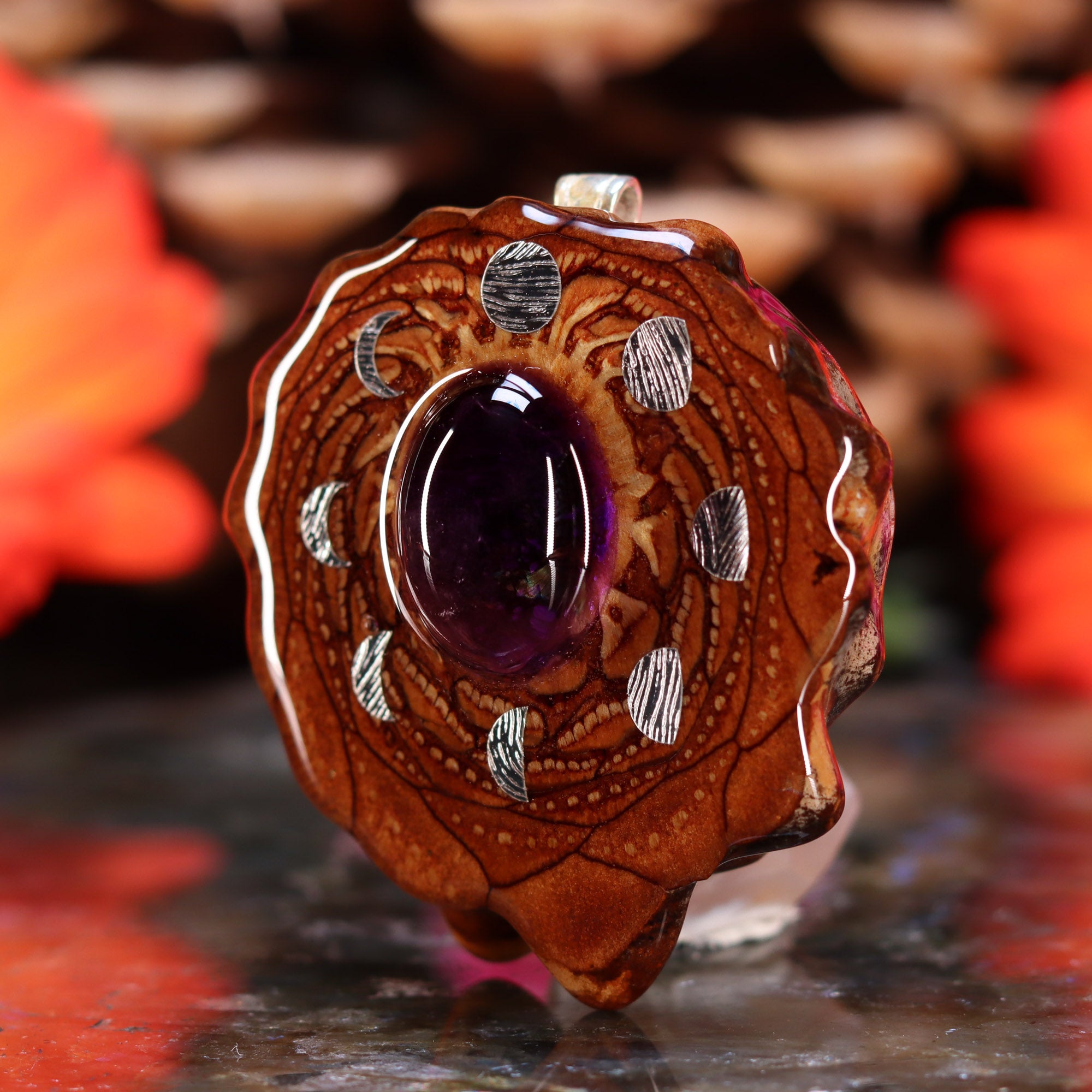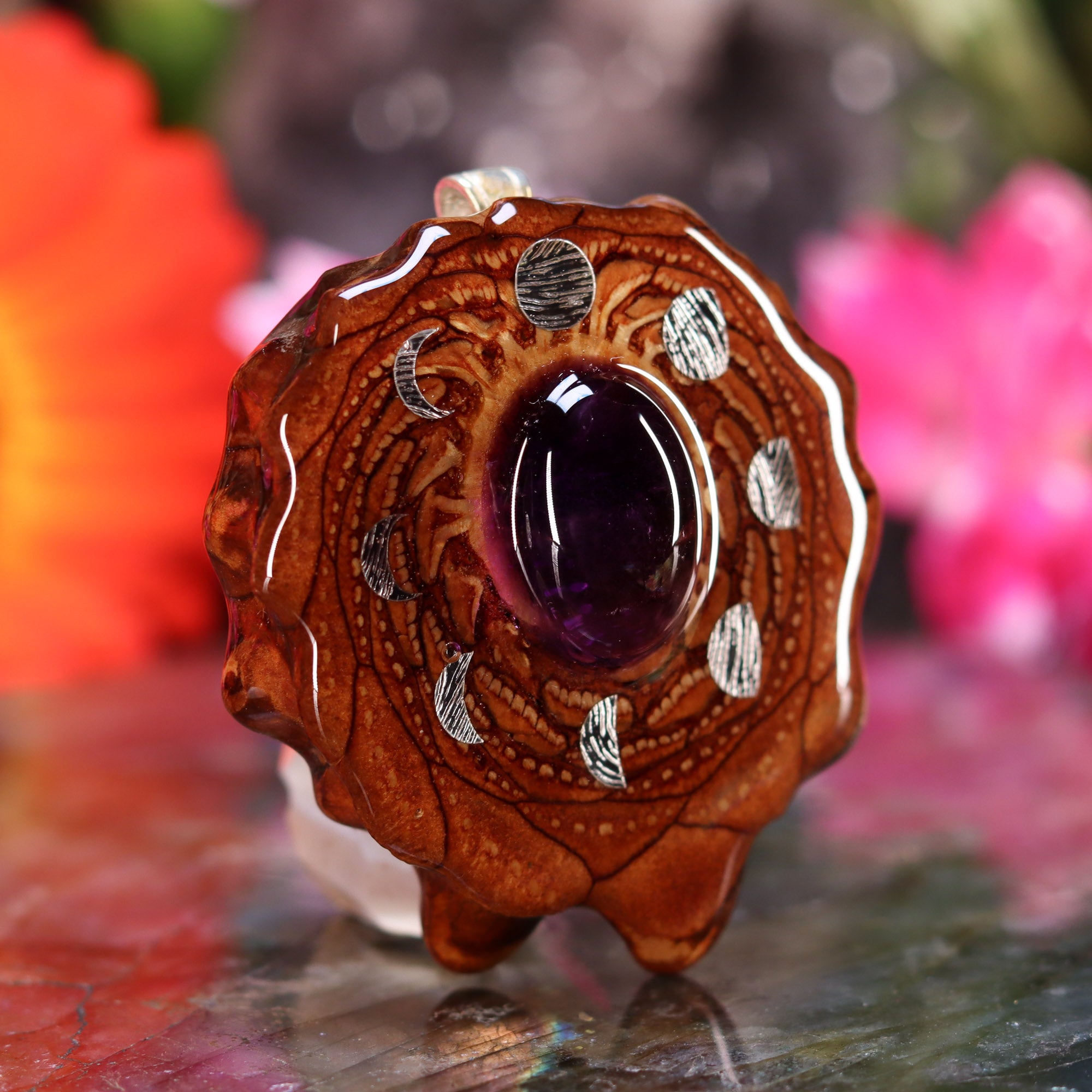 This Pinecone has been blessed with the Moon Cycles, cast in Sterling Silver. The moon has long been held as a sacred symbol for rebirth and change with each phase bringing new opportunities for growth.