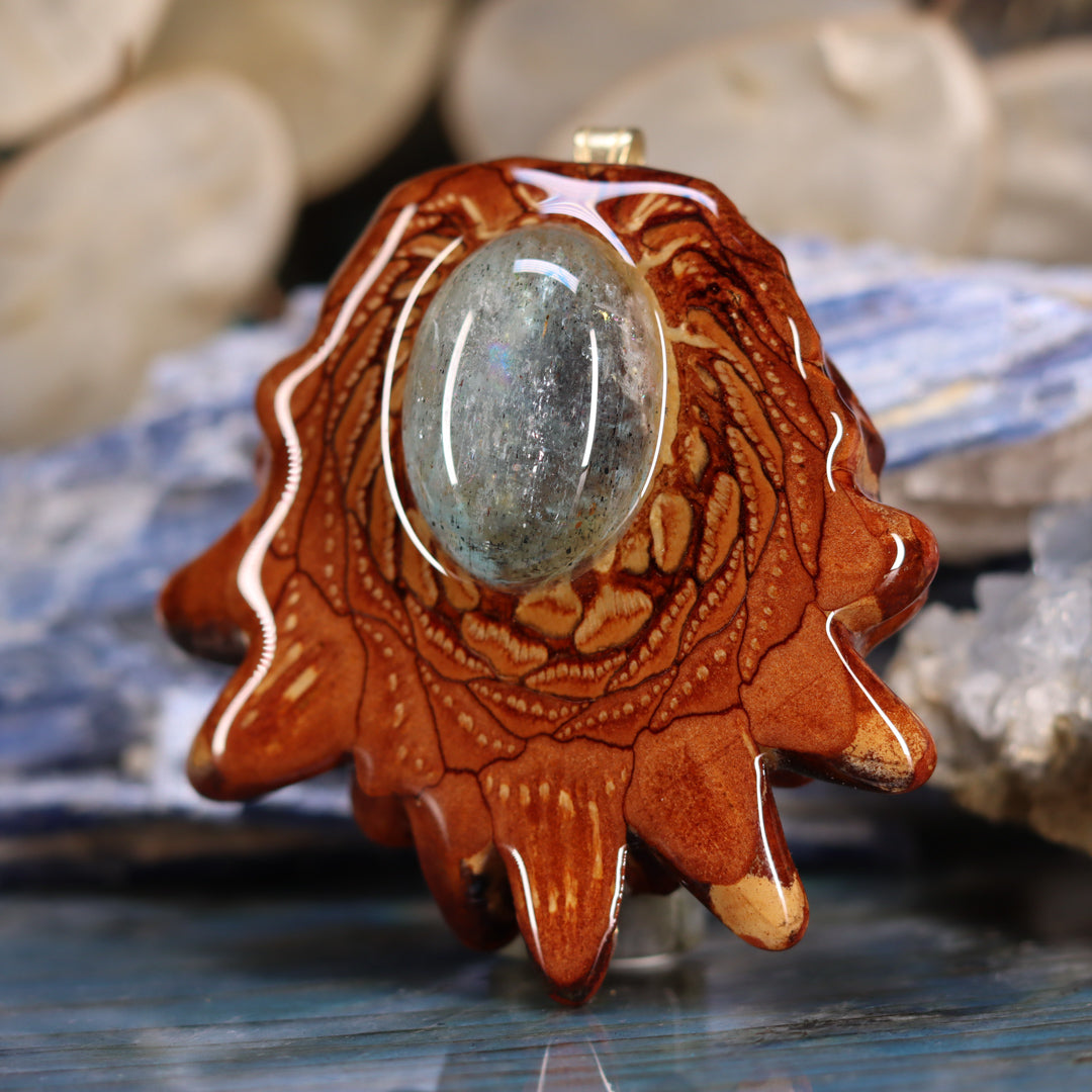 Every pinecone pendant is an elegant gift from Mother Nature -- unveiling the ornate Sacred Geometry hidden at the center of one of the world's densest Pinecones. Because only one cross-section is taken from the "heart" of each Cone, every pendant is absolutely unique, and truly one-of-a-kind.