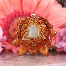 Every pinecone pendant is an elegant gift from Mother Nature -- unveiling the ornate Sacred Geometry hidden at the center of one of the world's densest Pinecones. Because only one cross-section is taken from the "heart" of each Cone, every pendant is absolutely unique, and truly one-of-a-kind.