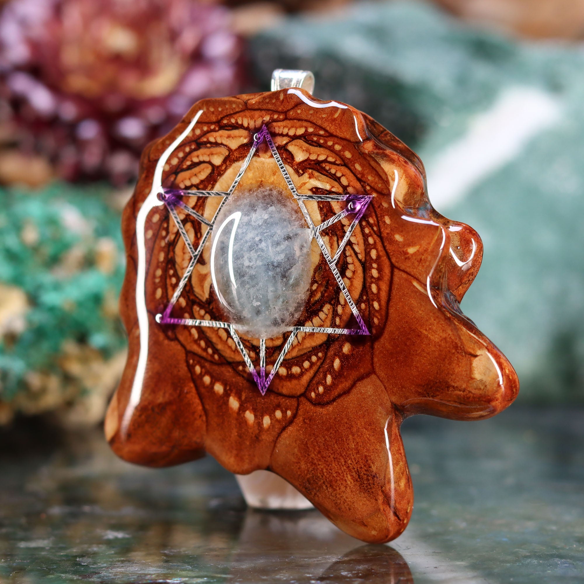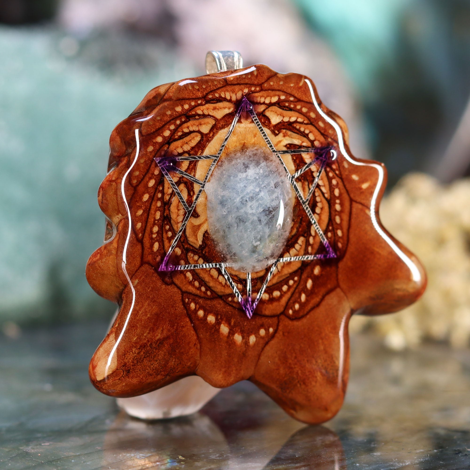 This Pinecone has been anointed with our "Merkaba" emblem, cast in Sterling Silver. Merkaba - "Mer" meaning Light, "Ka" meaning Spirit, and "Ba" meaning Body - is a powerful  icon historically known as the "Vehicle of Ascension". The Merkaba opens the mind to increased awareness and promotes deep conscious interconnection.