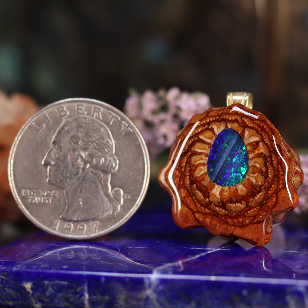 Every pinecone pendant is an elegant gift from Mother Nature -- unveiling the ornate Sacred Geometry hidden at the center of one of the world's densest Pinecones. Because only one cross-section is taken from the "heart" of each Cone, every pendant is absolutely unique, and truly one-of-a-kind.