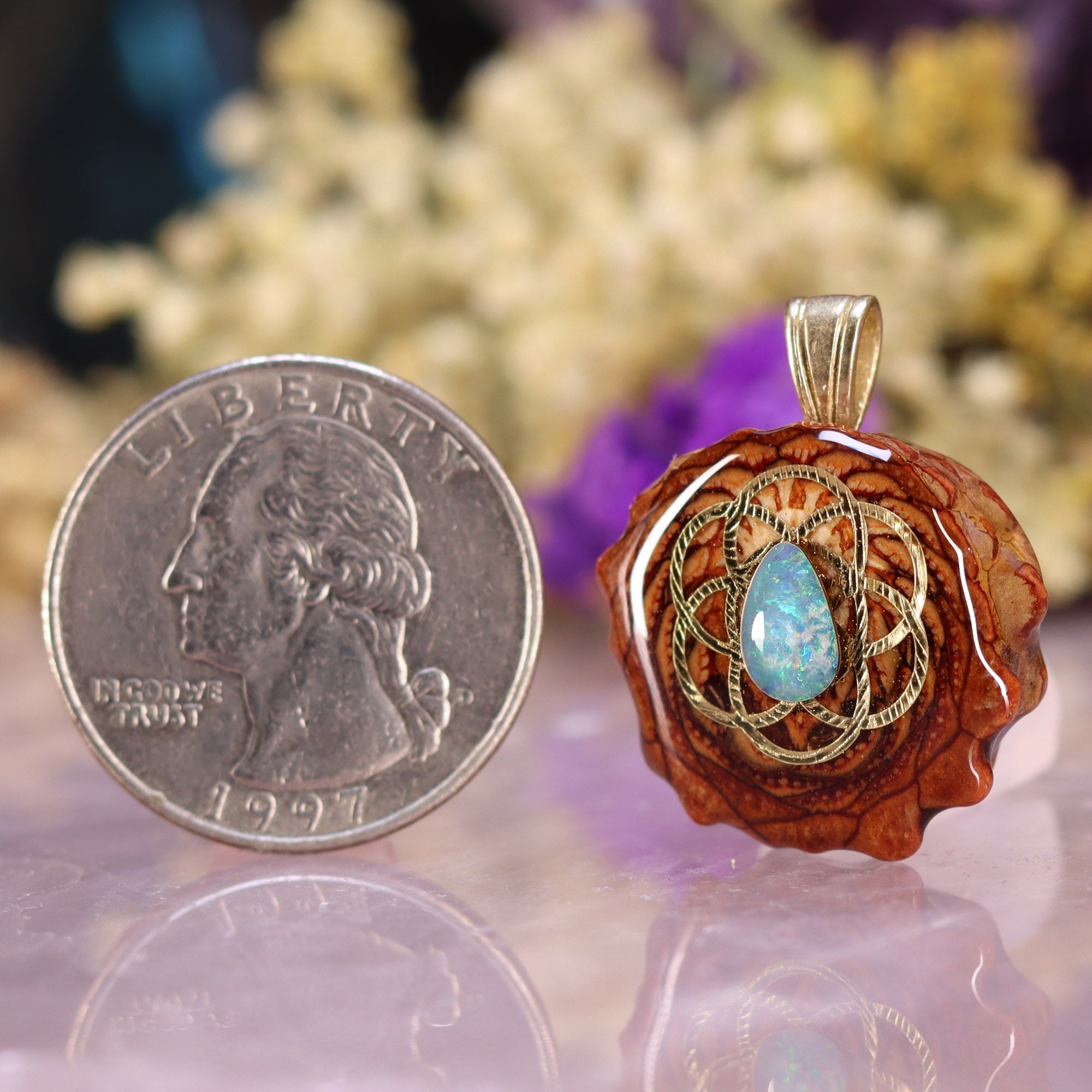 Every pinecone pendant is an elegant gift from Mother Nature -- unveiling the ornate Sacred Geometry hidden at the center of one of the world's densest Pinecones. Because only one cross-section is taken from the "heart" of each Cone, every pendant is absolutely unique, and truly one-of-a-kind.