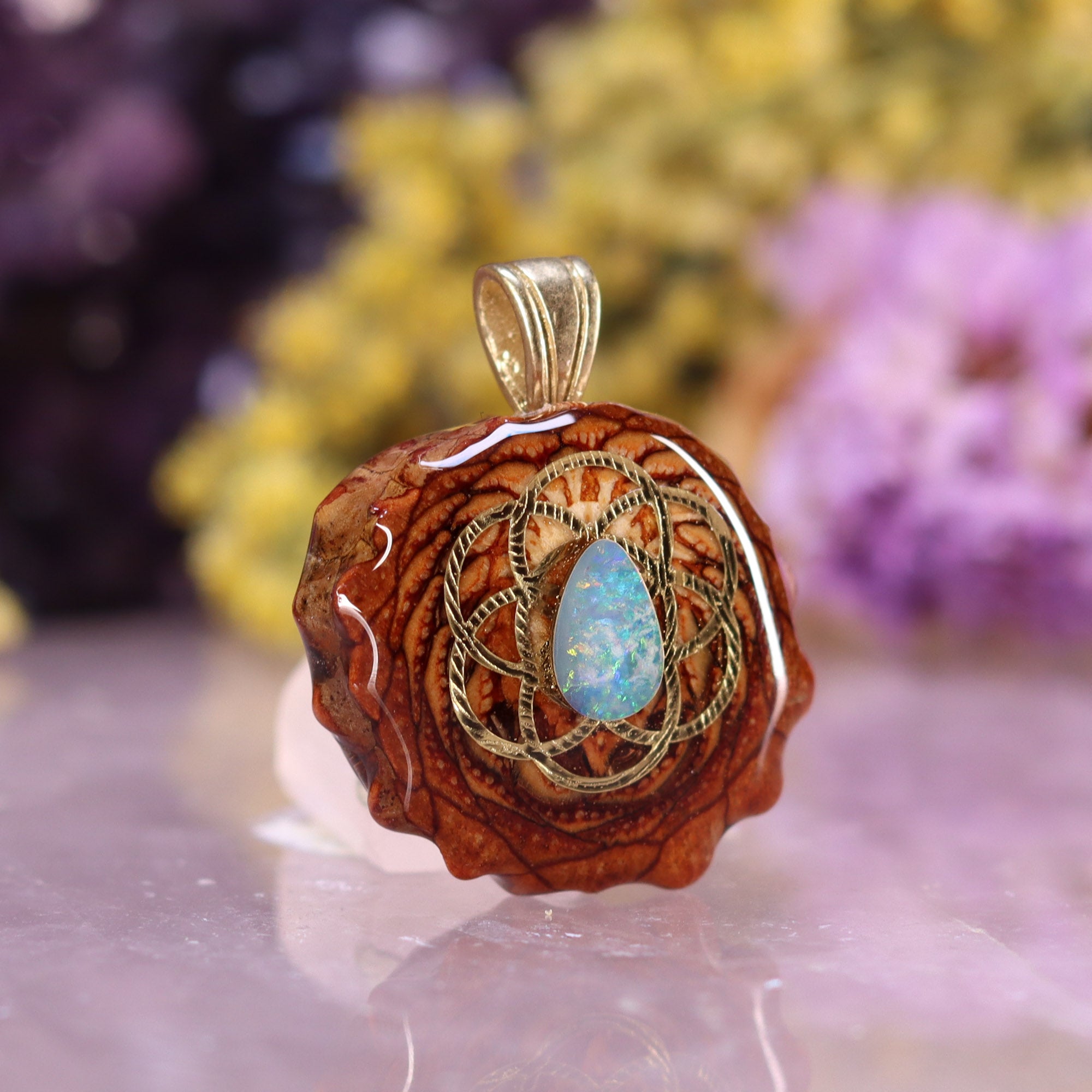 Derived from the Sanskrit word "upala" (meaning "valuable stone"), this stone consists of both colloidal silica and up to 20% water – bringing the fortitude of earth with the unfathomable mystery of water. It is considered to be the crystal of the New Age, and has been beloved by alchemists and mystics throughout the centuries for its ability to facilitate connection to the higher self and to the wisdom of the Ancients. Australian Blue Opal is known for enhancing communication skills and providing one with the courage and freedom to speak at the right time.