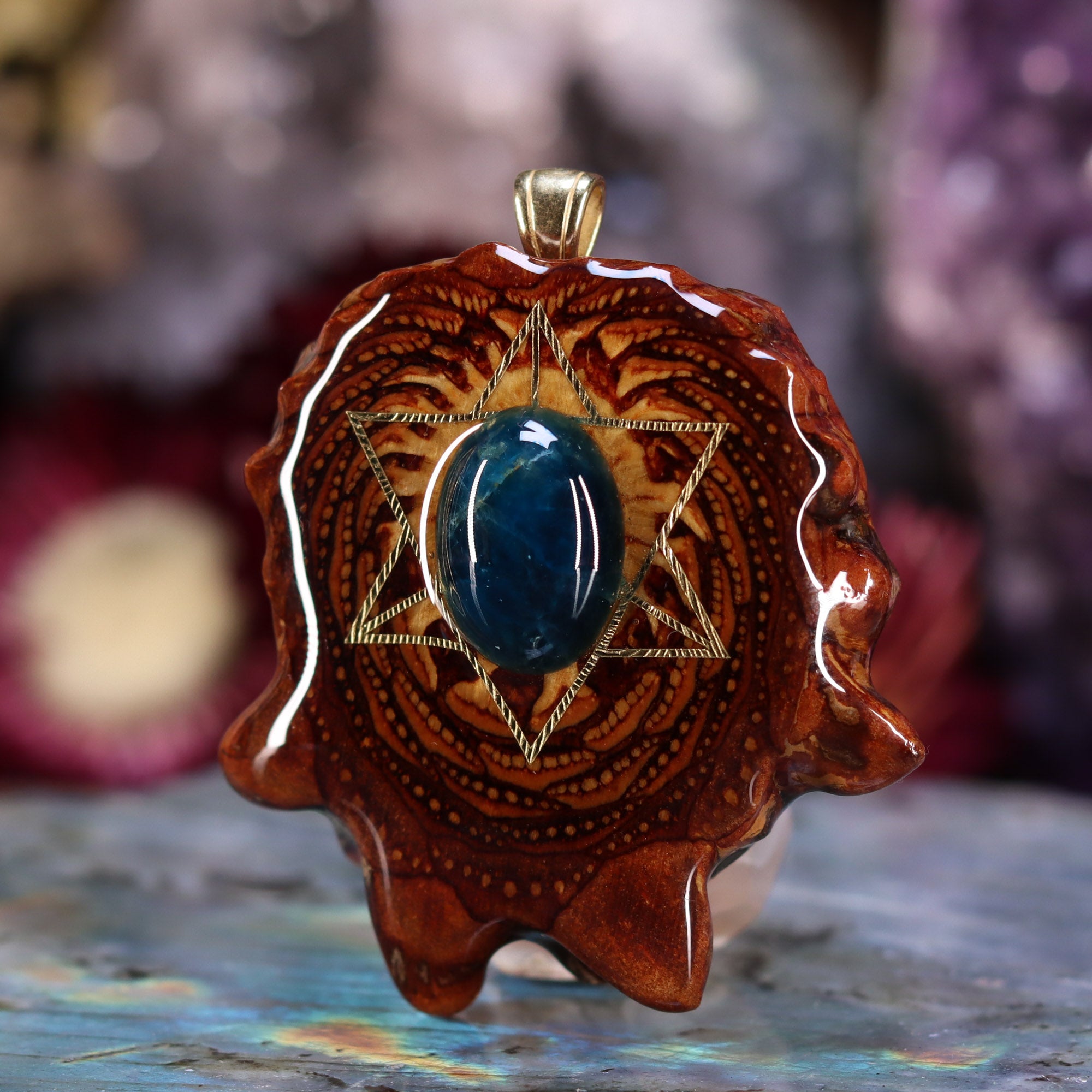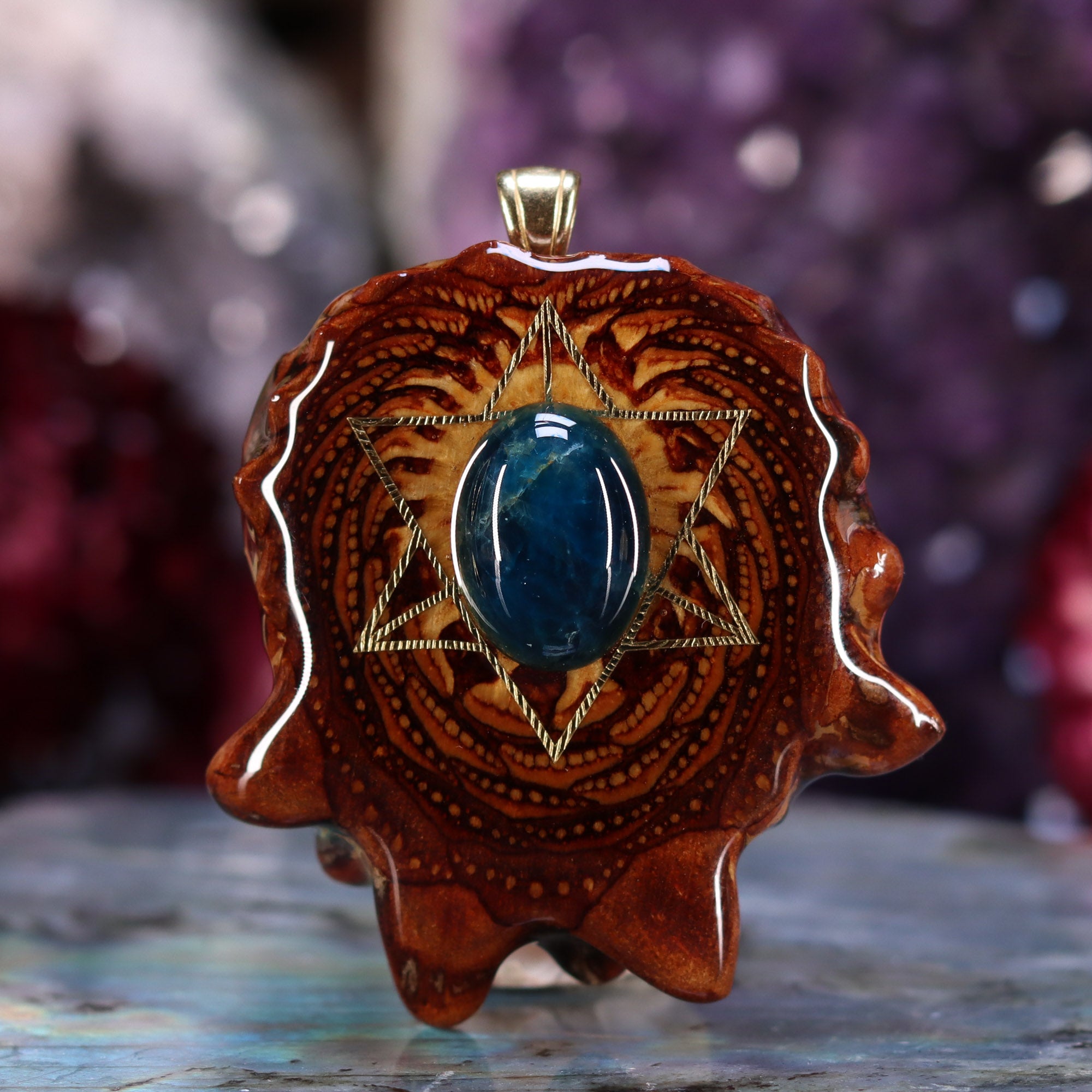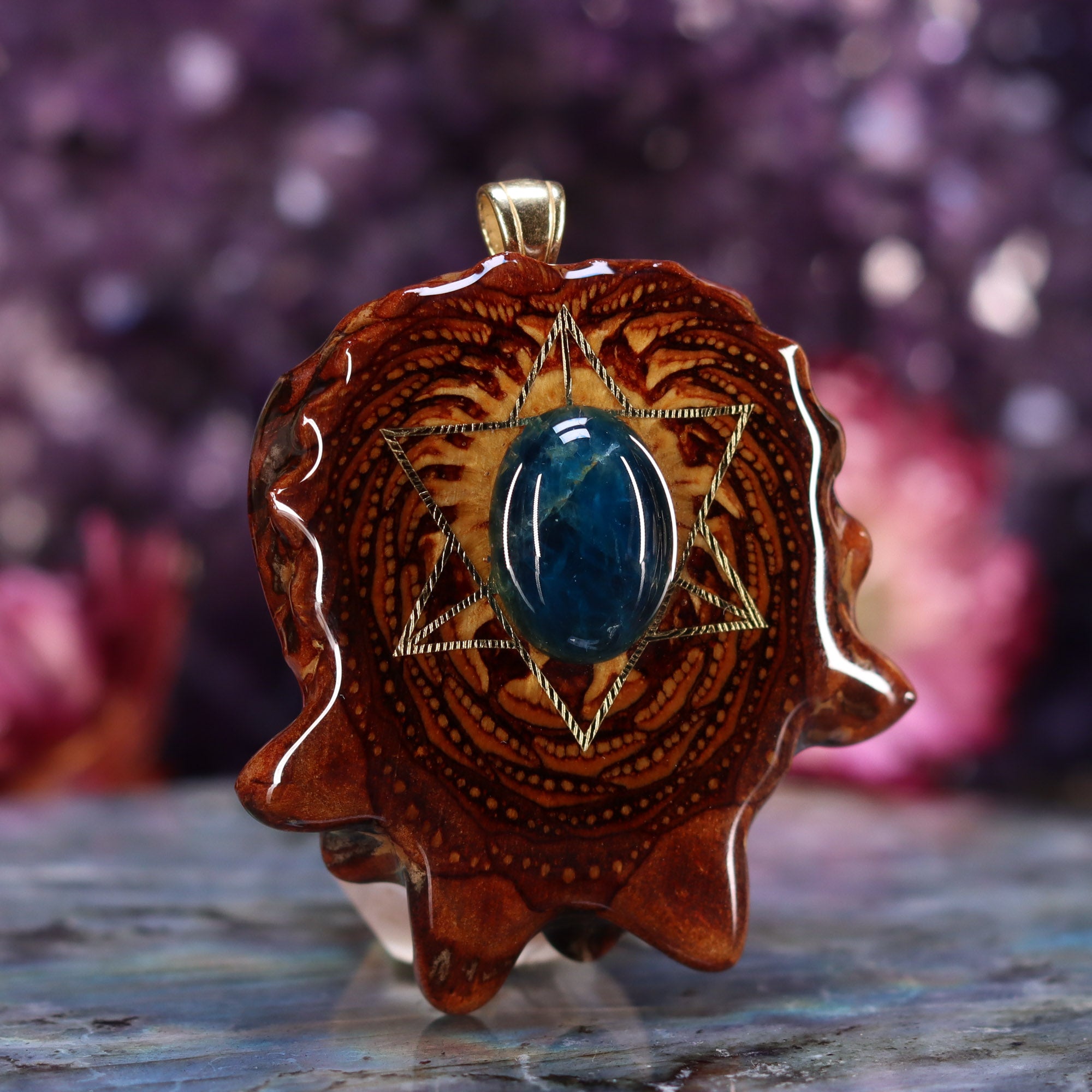 Blue Apatite with Gold Merkaba
