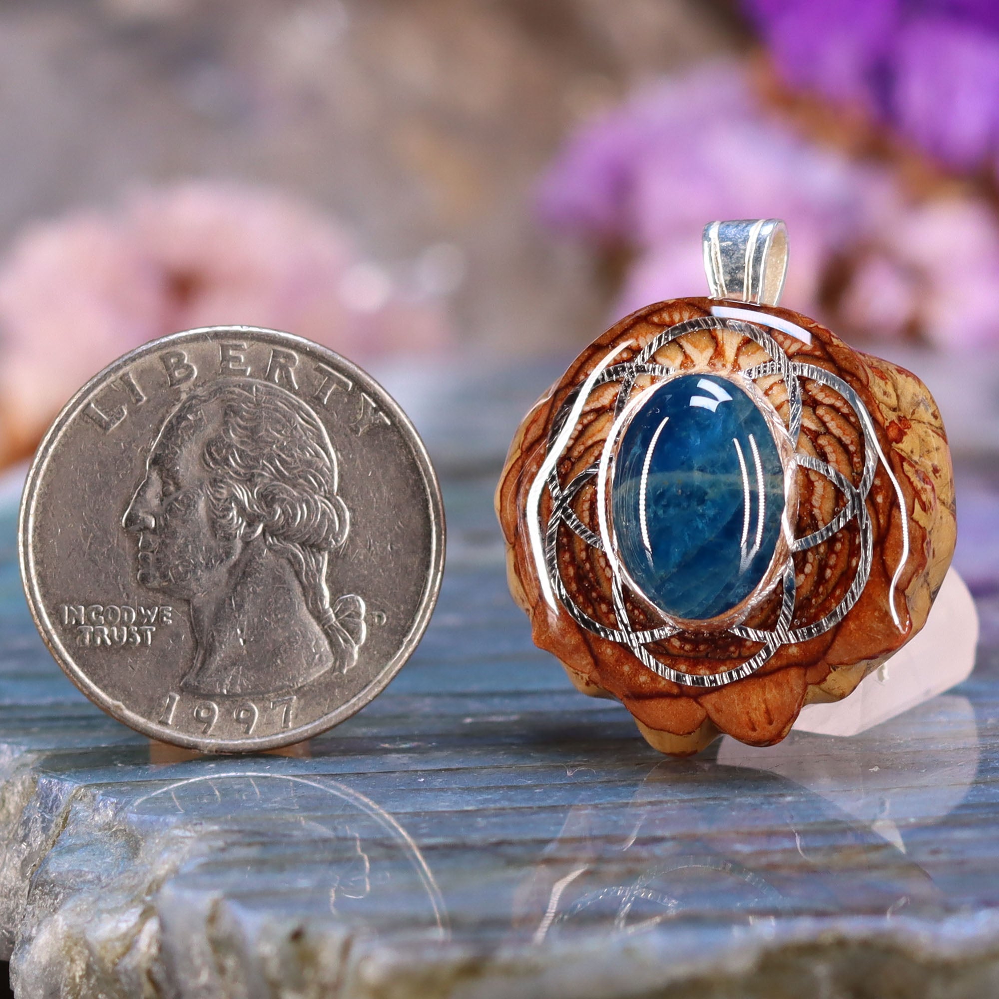 Every pinecone pendant is an elegant gift from Mother Nature -- unveiling the ornate Sacred Geometry hidden at the center of one of the world's densest Pinecones. Because only one cross-section is taken from the "heart" of each Cone, every pendant is absolutely unique, and truly one-of-a-kind.