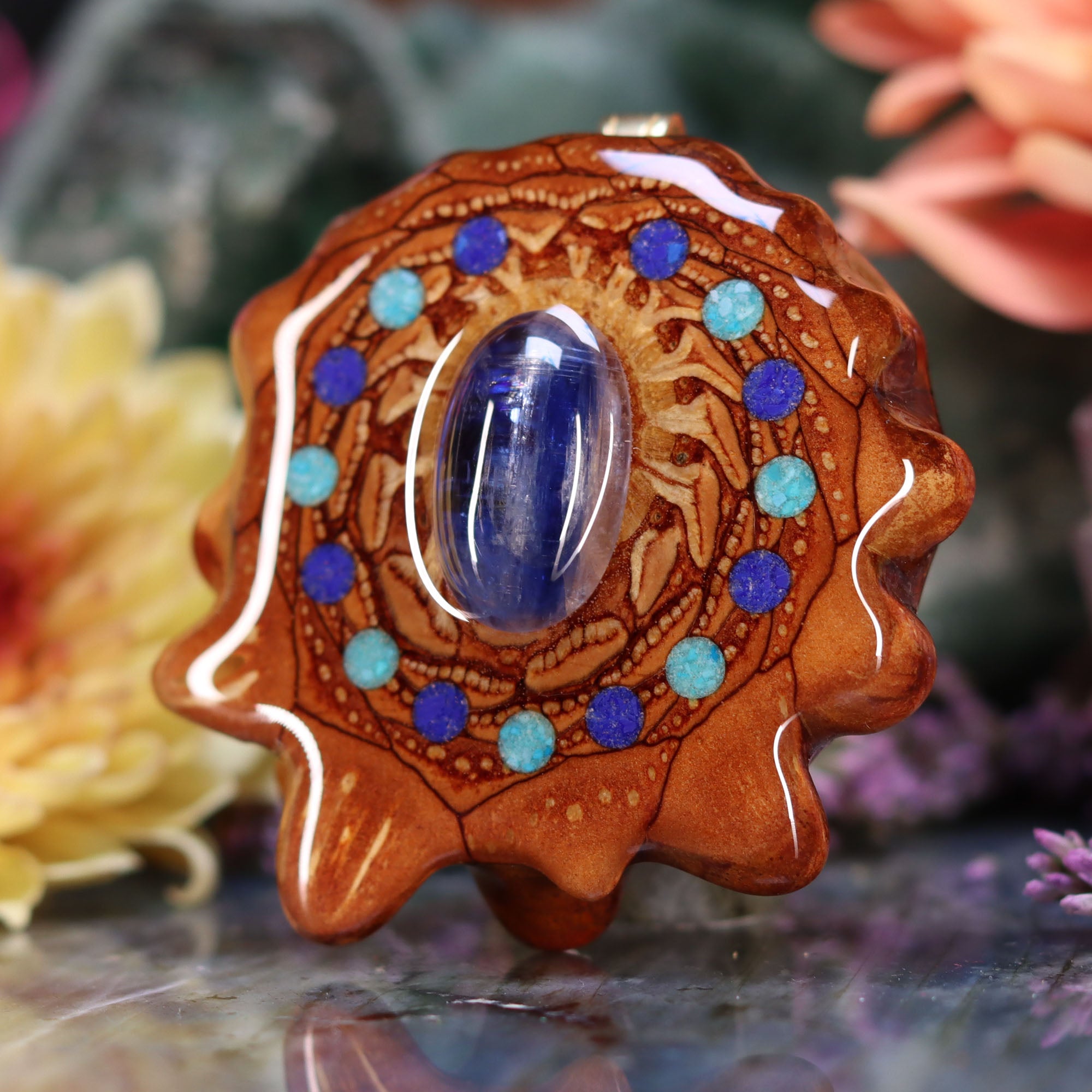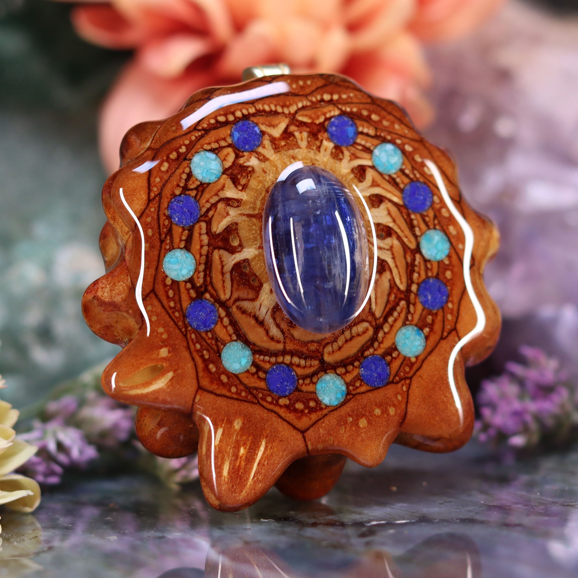 Every pinecone pendant is an elegant gift from Mother Nature -- unveiling the ornate Sacred Geometry hidden at the center of one of the world's densest Pinecones. Because only one cross-section is taken from the "heart" of each Cone, every pendant is absolutely unique, and truly one-of-a-kind.