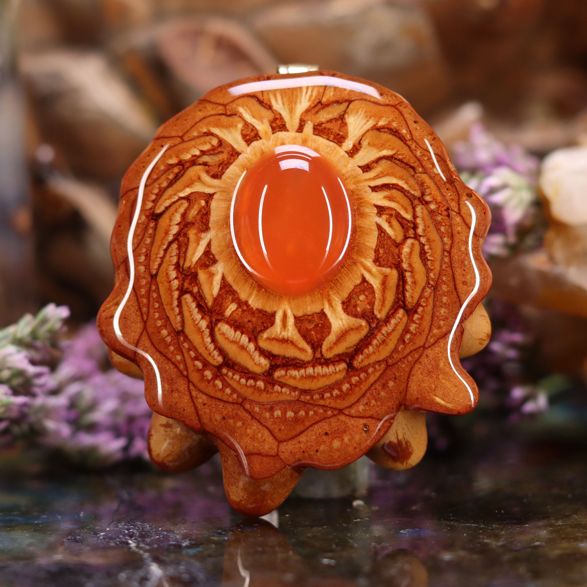 Every pinecone pendant is an elegant gift from Mother Nature -- unveiling the ornate Sacred Geometry hidden at the center of one of the world's densest Pinecones. Because only one cross-section is taken from the "heart" of each Cone, every pendant is absolutely unique, and truly one-of-a-kind.