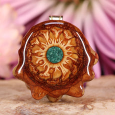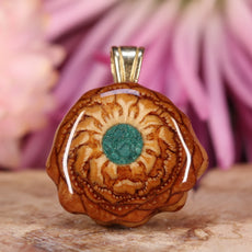 Every pinecone pendant is an elegant gift from Mother Nature -- unveiling the ornate Sacred Geometry hidden at the center of one of the world's densest Pinecones. Because only one cross-section is taken from the "heart" of each Cone, every pendant is absolutely unique, and truly one-of-a-kind.