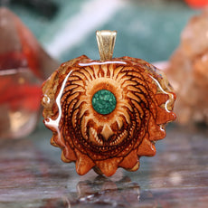 Every pinecone pendant is an elegant gift from Mother Nature -- unveiling the ornate Sacred Geometry hidden at the center of one of the world's densest Pinecones. Because only one cross-section is taken from the "heart" of each Cone, every pendant is absolutely unique, and truly one-of-a-kind.