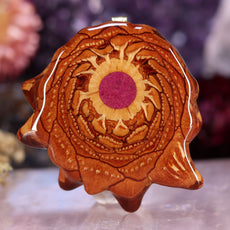Every pinecone pendant is an elegant gift from Mother Nature -- unveiling the ornate Sacred Geometry hidden at the center of one of the world's densest Pinecones. Because only one cross-section is taken from the "heart" of each Cone, every pendant is absolutely unique, and truly one-of-a-kind.