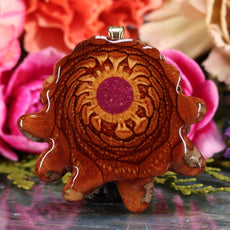 Every pinecone pendant is an elegant gift from Mother Nature -- unveiling the ornate Sacred Geometry hidden at the center of one of the world's densest Pinecones. Because only one cross-section is taken from the "heart" of each Cone, every pendant is absolutely unique, and truly one-of-a-kind.